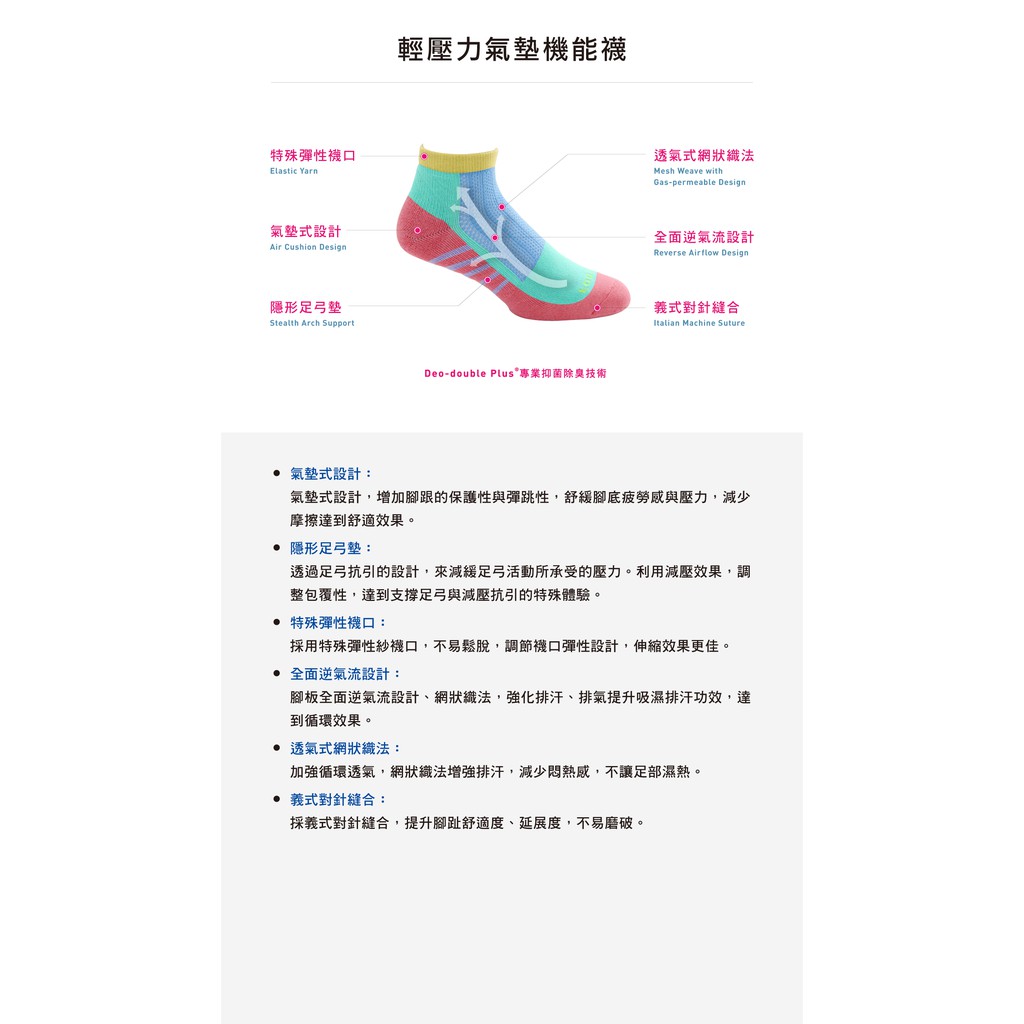 FOOTER|輕壓力氣墊機能襪|輕壓力 運動襪 除臭襪 短筒襪 (男-T95)T95-灰|T95-藍|T95-黑|T95-白FOOTER 機能除臭襪