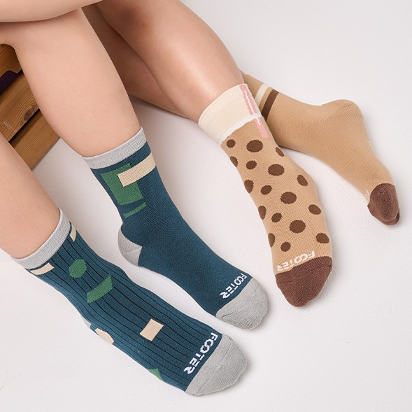 FOOTER|幾何拼接不對稱襪(童)|除臭襪 童襪 運動襪 中筒襪 (童-K227M/L)