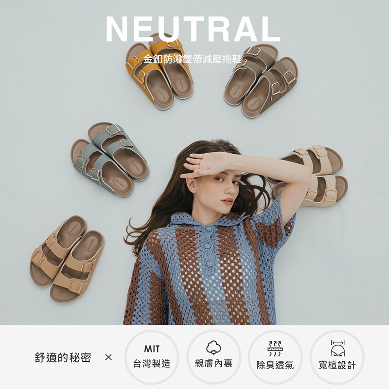 NEUTRAL 金釦防潑雙帶減壓拖鞋 黃黃36|黃37|黃38|黃39|黃40Flat SandalsFM shoes 流行女鞋第一首選!快速出貨 |免運費
