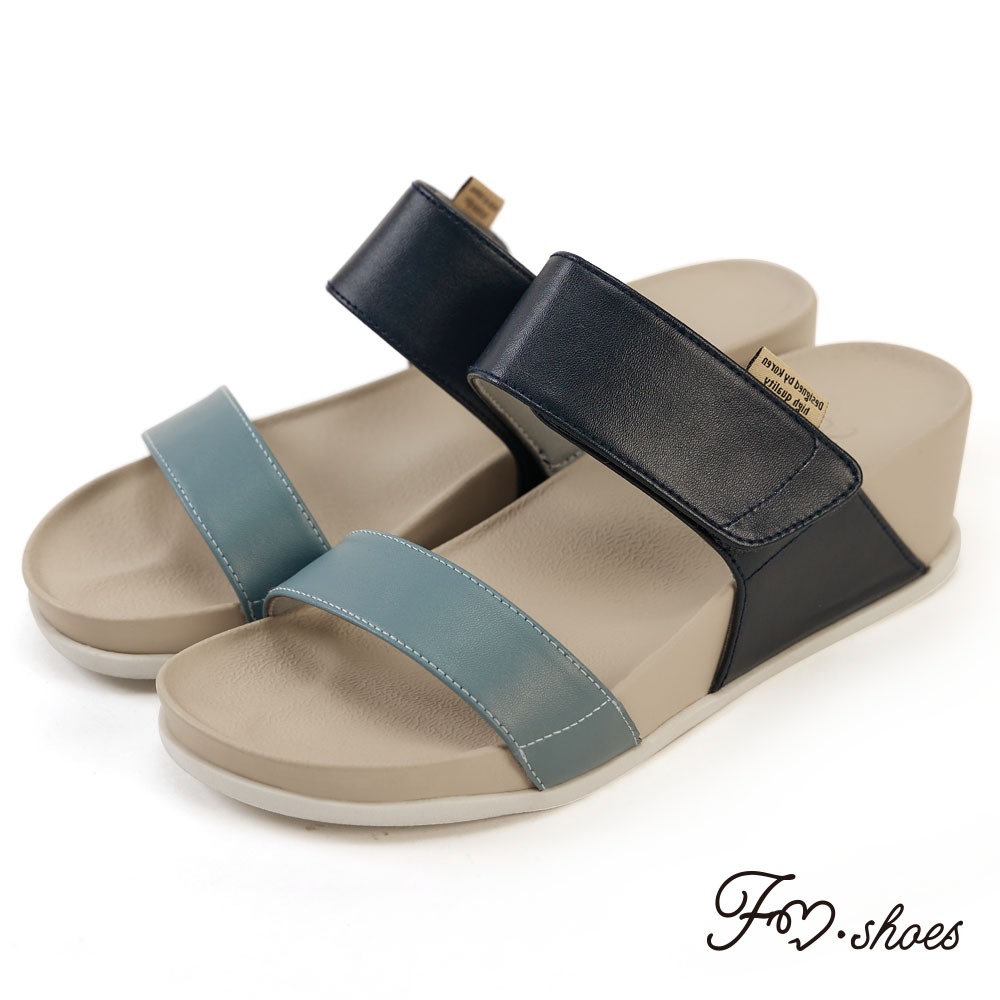 FM SHOES 撞色減壓楔型拖鞋 藍
