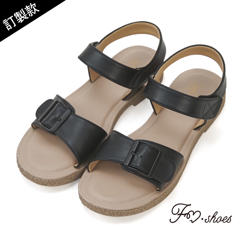 FM SHOES 涼感方釦按摩涼鞋 黑黑36|黑37|黑38|黑39|黑40|黑41|黑42Flat SandalsFM shoes 流行女鞋第一首選!快速出貨 |免運費