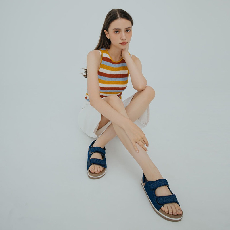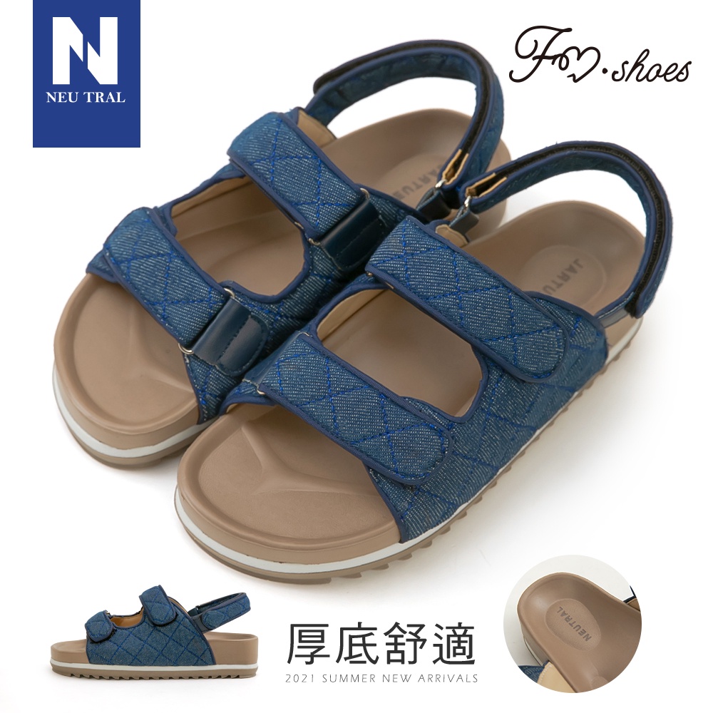 NEUTRAL 小香風菱格紋牛仔布減壓涼鞋 藍藍36|藍37|藍38|藍39|藍40Flat SandalsFM shoes 流行女鞋第一首選!快速出貨 |免運費