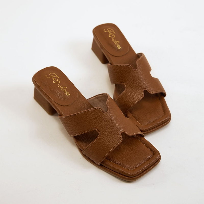FM SHOES 時髦修飾高跟拖鞋 棕棕36|棕37|棕38|棕39|棕40|棕41|棕42FM shoes 流行女鞋第一首選!快速出貨 |免運費
