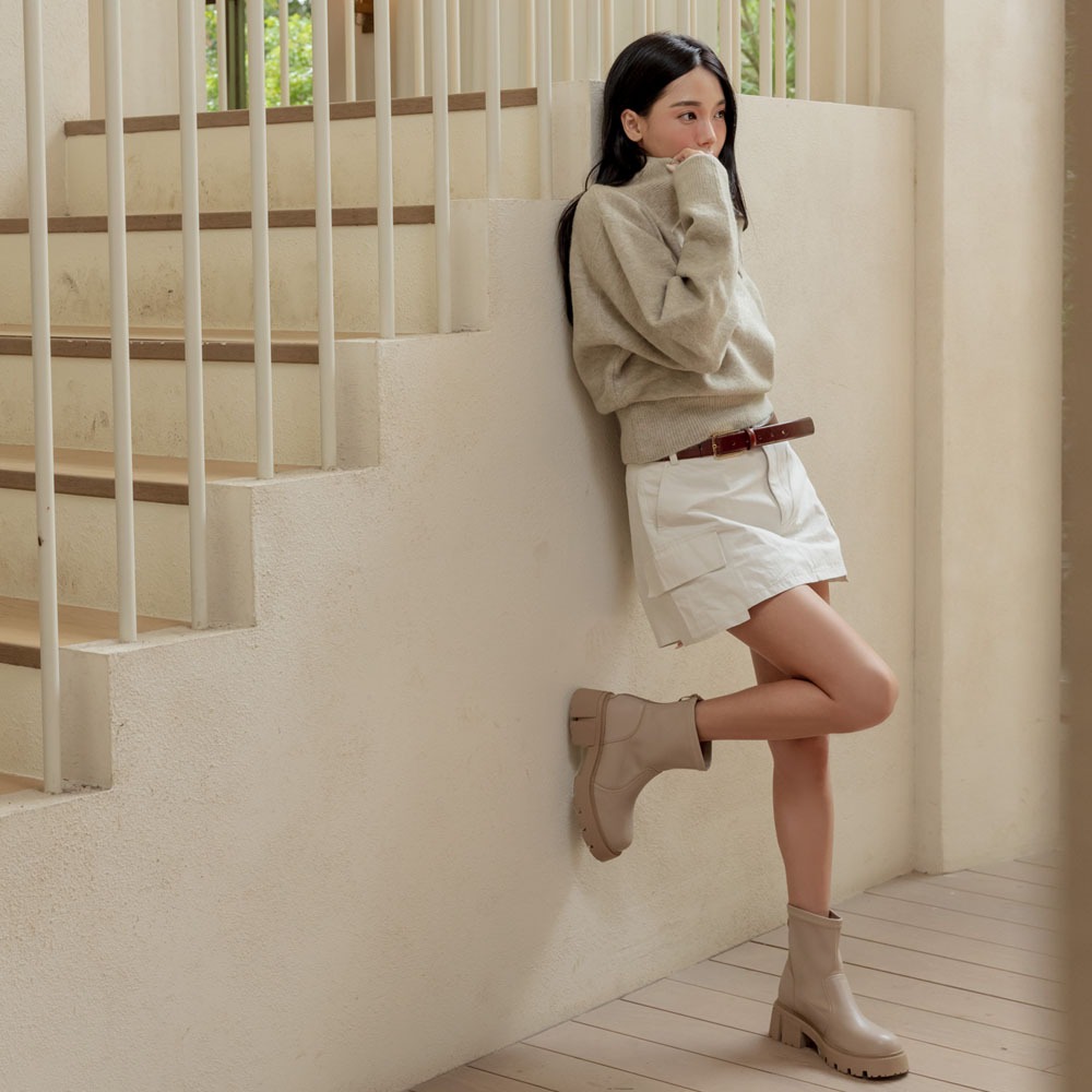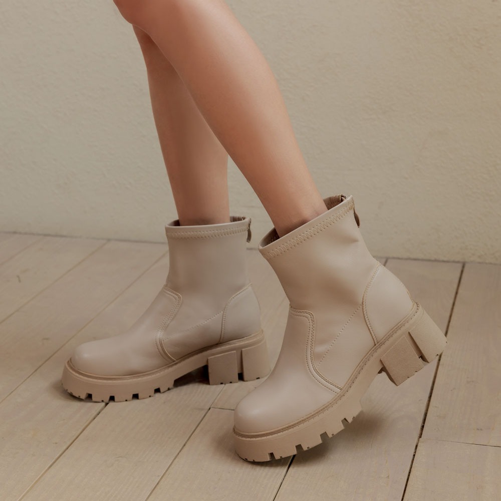 FM SHOES 防潑水鋸齒襪靴 杏杏36|杏37|杏38|杏39|杏40|杏41Fashion BootsFM shoes 流行女鞋第一首選!快速出貨 |免運費