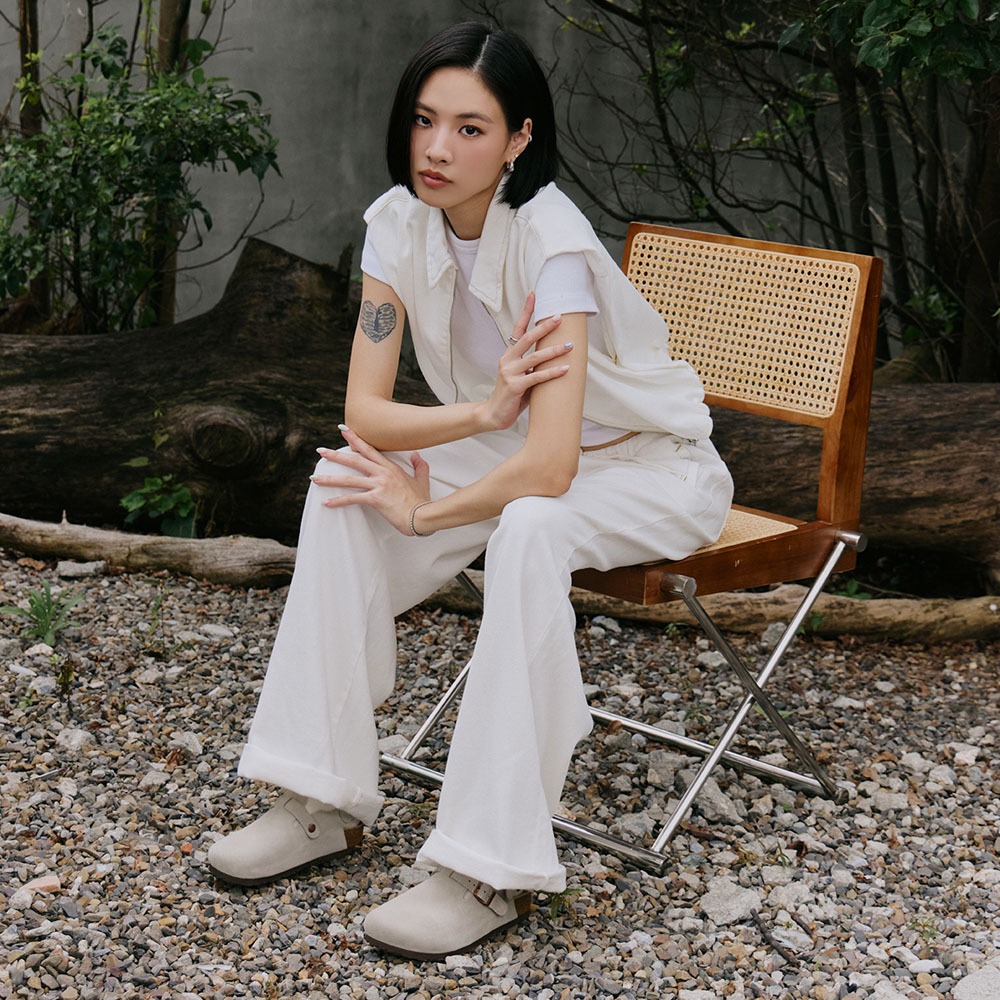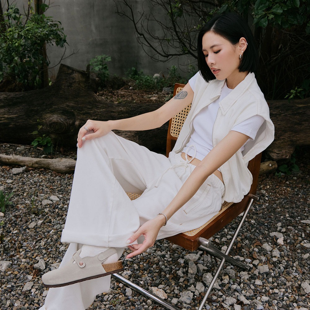 FM SHOES 全真皮足弓減壓麂皮饅頭鞋 白