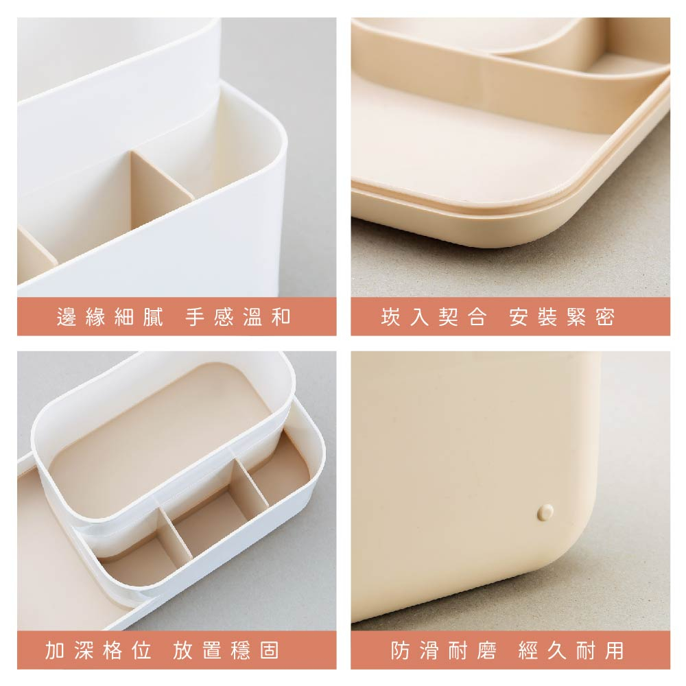 【FL生活+】多格桌面文具遙控器收納盒(A-177) 內建大小5分格 文具 妝品 遙控器及小物 適合各種桌面收納白灰色(超取限6組)|白杏色(超取限6組)Desk OrganizersFL生活+ 官方直營旗艦店
