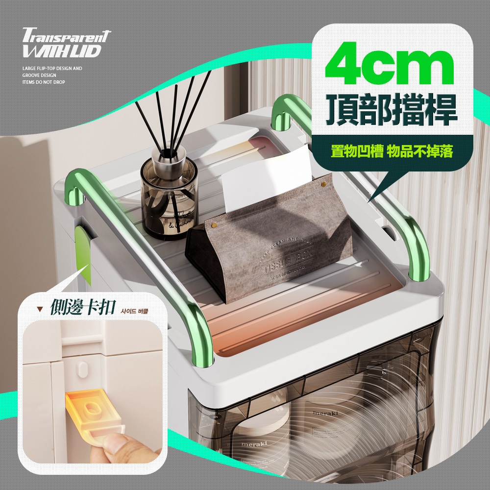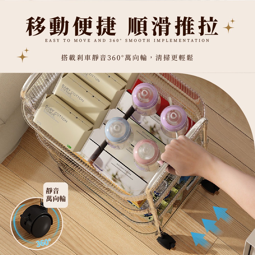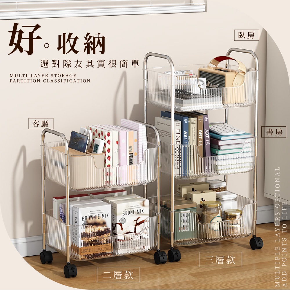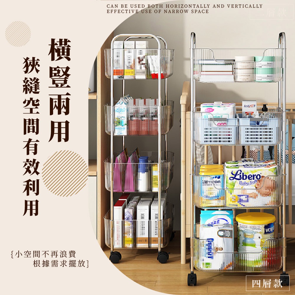 【FL生活+】透明U型加高防摔置物架系列 附輪子 手推車 推車 附掛籃 收納 廚房收納 衛浴收納 置物車 收納車 層架雙層款-(超取限1入)|3層款(限宅配)|4層款(限宅配)|雙層款附2個掛籃-(超取限1入)|3層款附3個掛籃(限宅配)|4層款附4個掛籃(限宅配)Shelves & RacksFL生活+ 官方直營旗艦店