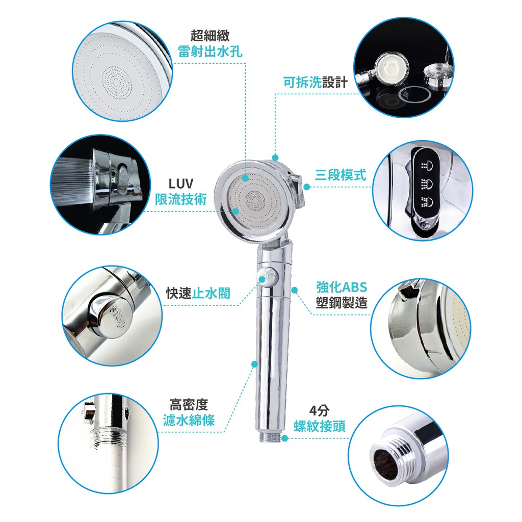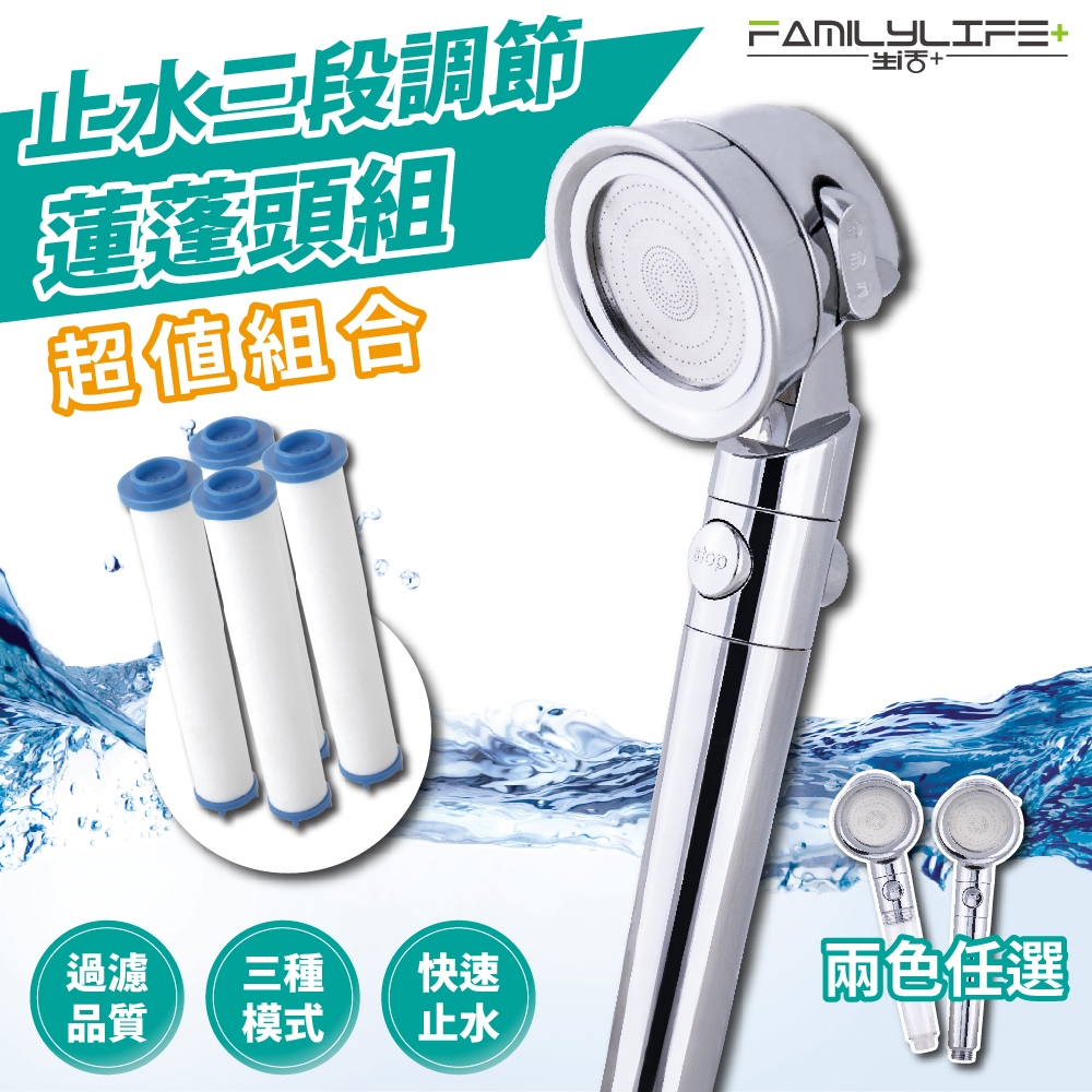 【FL生活+】享生活5件組 一鍵止水3段調節增壓省水蓮蓬頭+(過濾棉4入組)質感銀*1入+過濾棉*4入|透明色*1入+過濾棉*4入Showerheads & Bidet SpraysFL生活+ 官方直營旗艦店