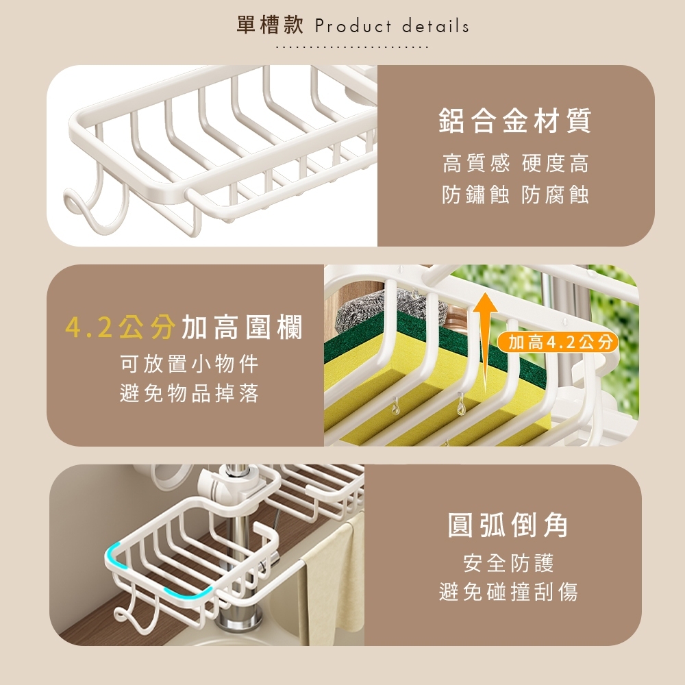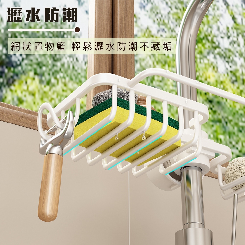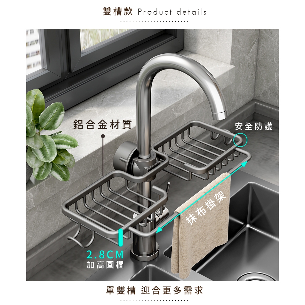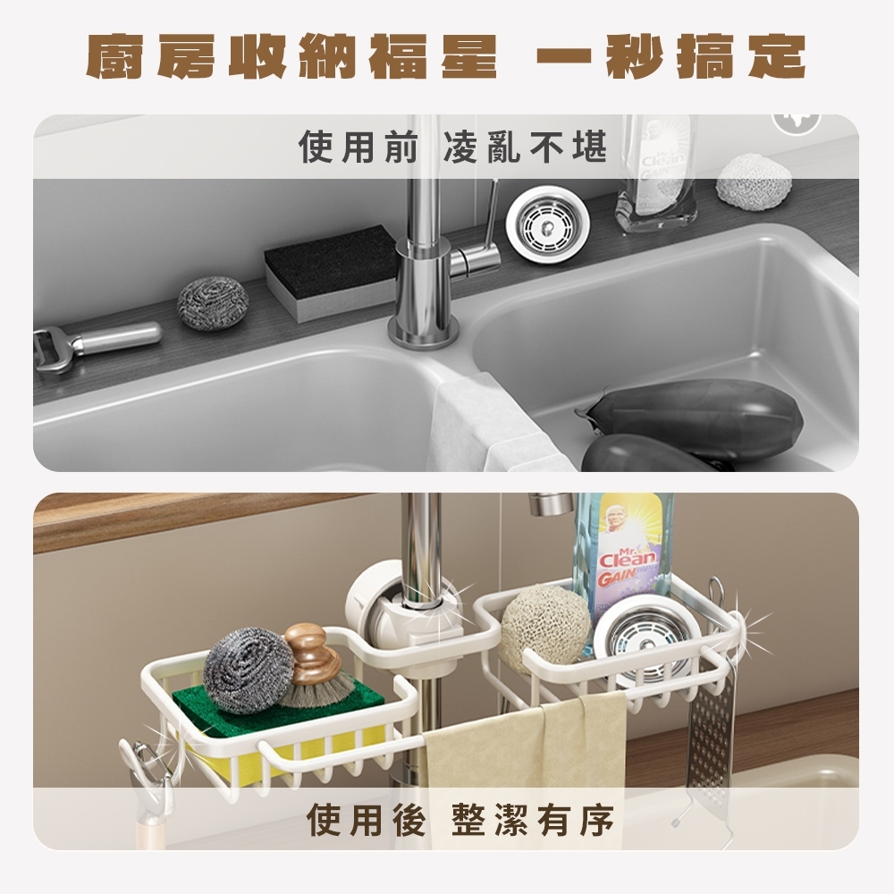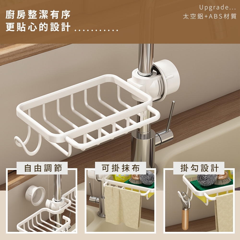 【FL生活+】太空鋁水龍頭置物架 水槽收納架 瀝水籃 免打孔 水槽收納架 可調節瀝水架 廚房收納架 抹布架 菜瓜布瀝水架福利品雙槽款-簡約白(髒污)2|福利品雙槽款-簡約白(髒污)4|右槽款-白色|福利品雙槽款-簡約白(髒污)1Kitchen RacksFL生活+ 官方直營旗艦店