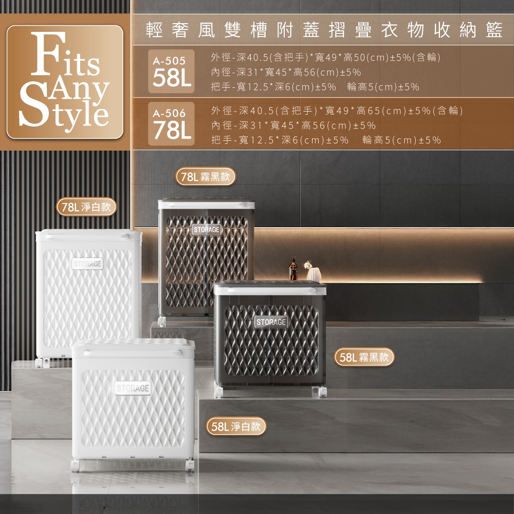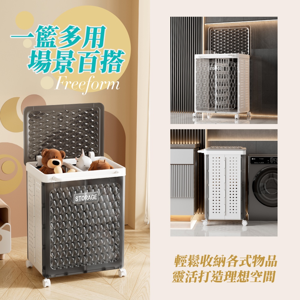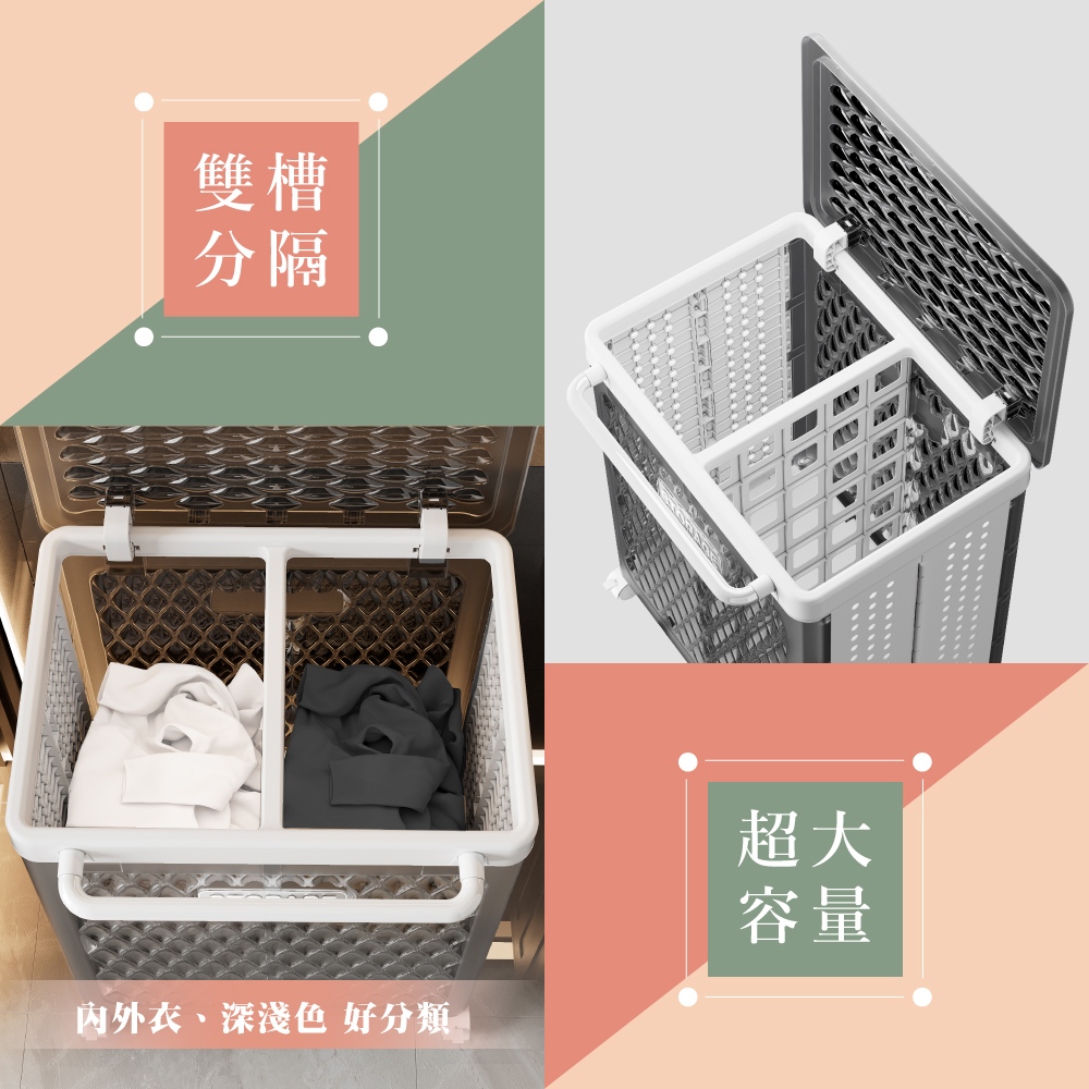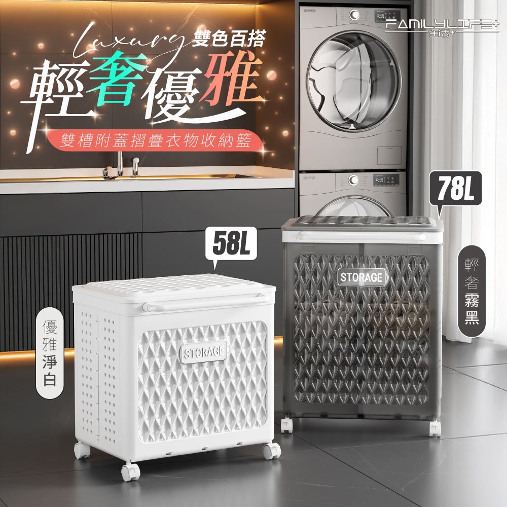 【FL生活+】輕奢風雙槽附蓋摺疊衣物收納籃 折疊洗衣籃 洗衣籃 折疊收納籃 摺疊洗衣籃 置物籃 縫隙 收納 髒衣洗衣籃58公升丨霧黑款|58公升丨淨白款|78公升丨霧黑款|78公升丨淨白款Laundry Bags & BasketsFL生活+ 官方直營旗艦店