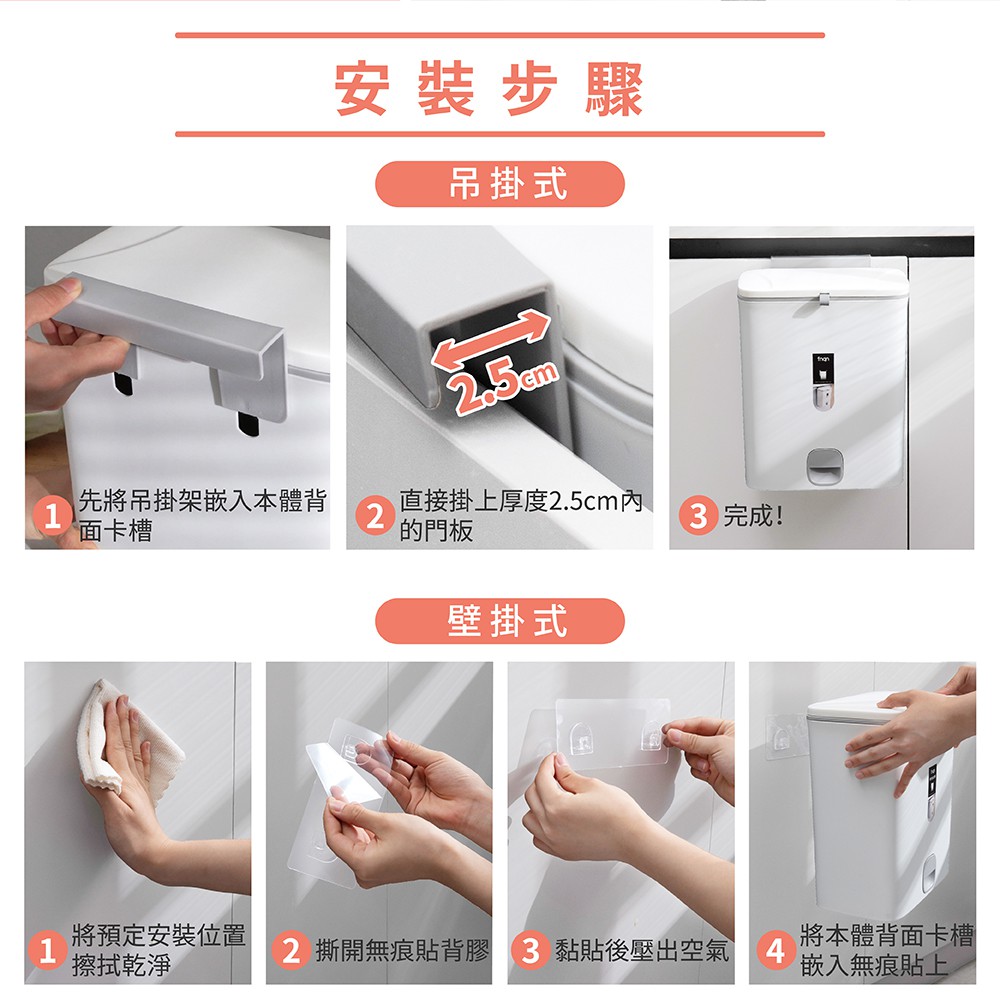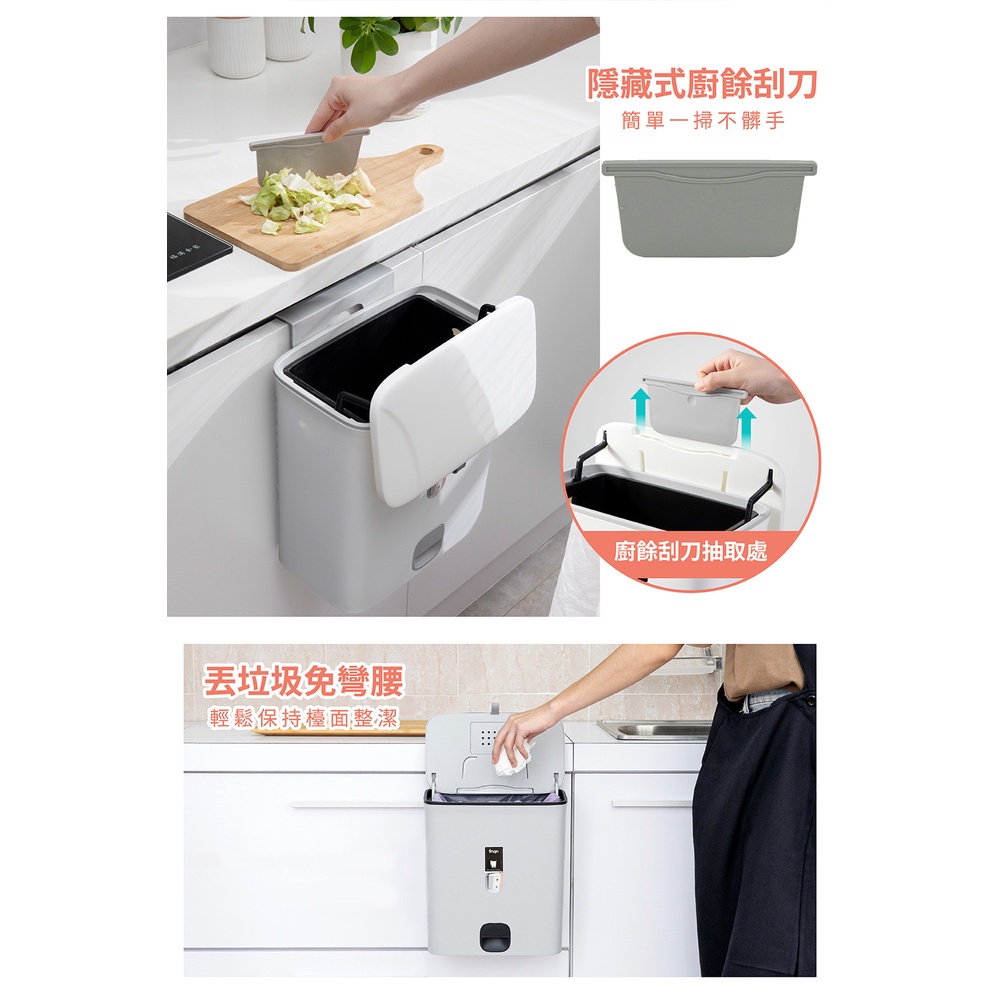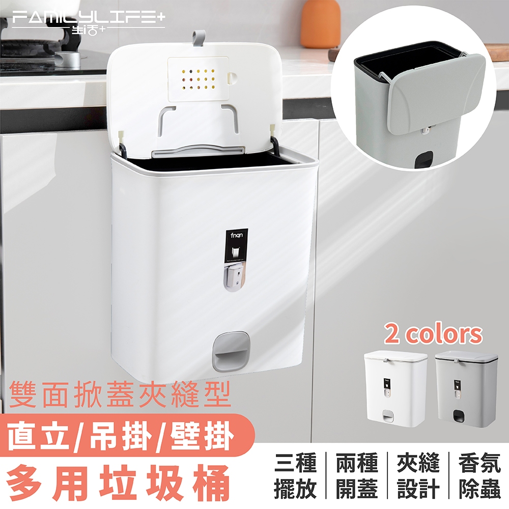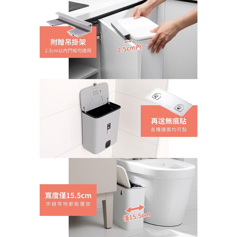 【FL生活+】夾縫型雙掀蓋直立/吊掛2用垃圾桶(YG-109)壁掛垃圾桶 垃圾筒 廁所垃圾桶 廚房垃圾桶 廚房垃圾桶掛式淺灰色(超取限2入)|純白色(超取限2入)Trash & Recycling BinsFL生活+ 官方直營旗艦店