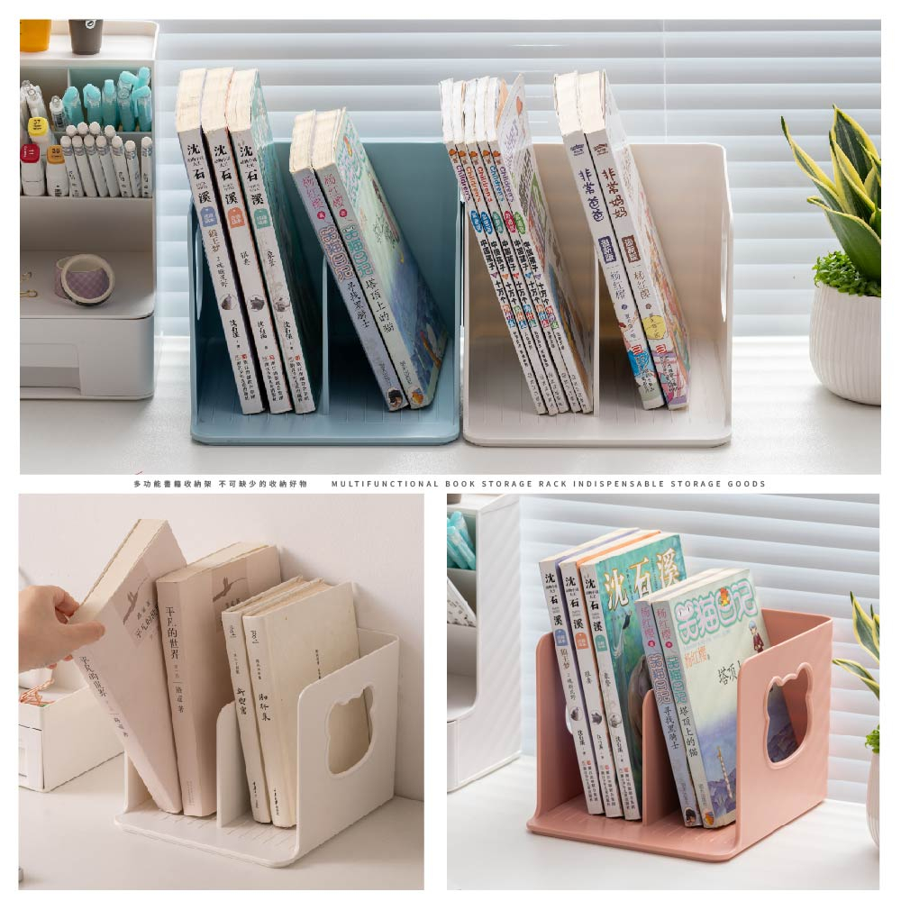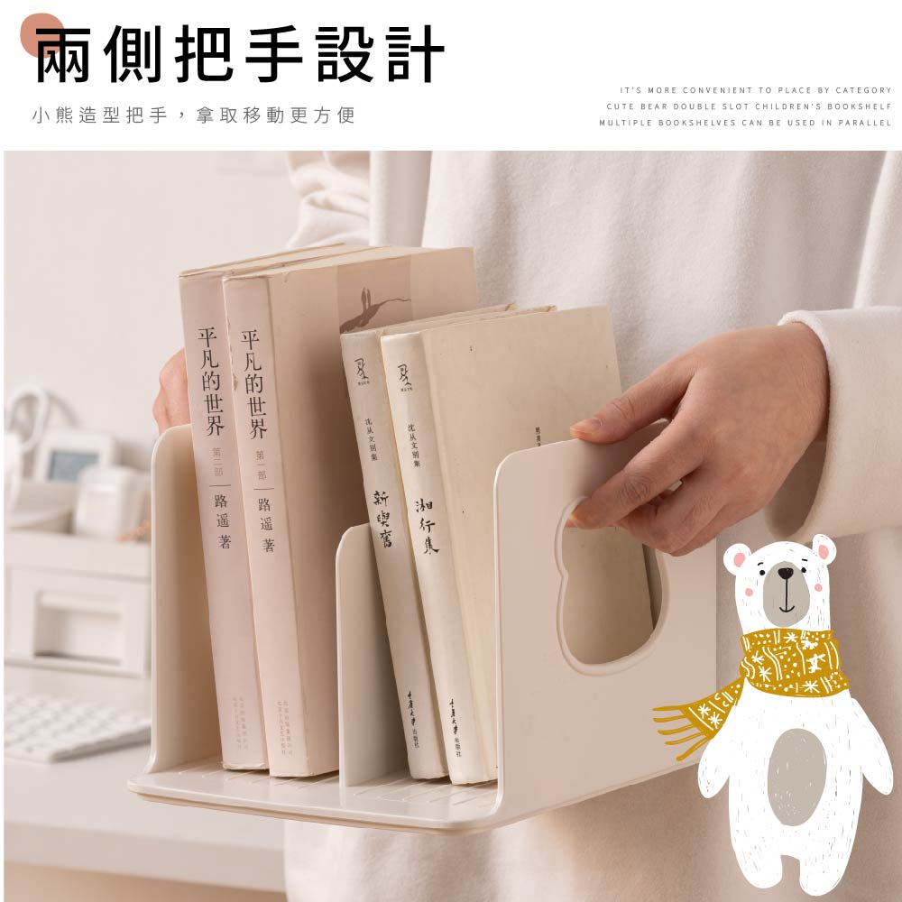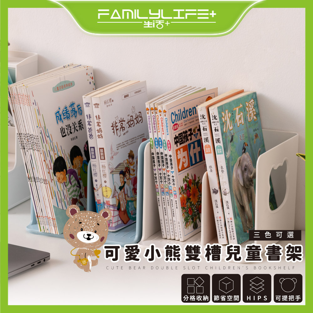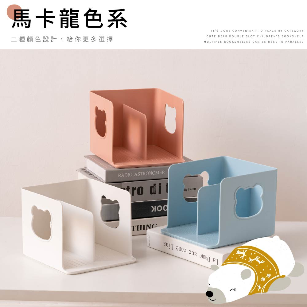【FL生活+】可愛小熊雙槽兒童書架(A-171) 免安裝 桌上收納 資料收納架 文件收納盒 書本支架 桌面書架 書架收納藍色(超取限4組)|粉色(超取限4組)|白色(超取限4組)Desk OrganizersFL生活+ 官方直營旗艦店