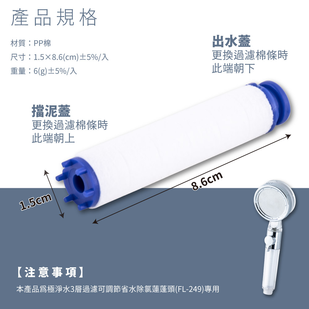 【FL生活+】極淨水3層過濾可調節省水除氯蓮蓬頭 專用棉條(4入裝)過濾棉條-4入組Showerheads & Bidet SpraysFL生活+ 官方直營旗艦店