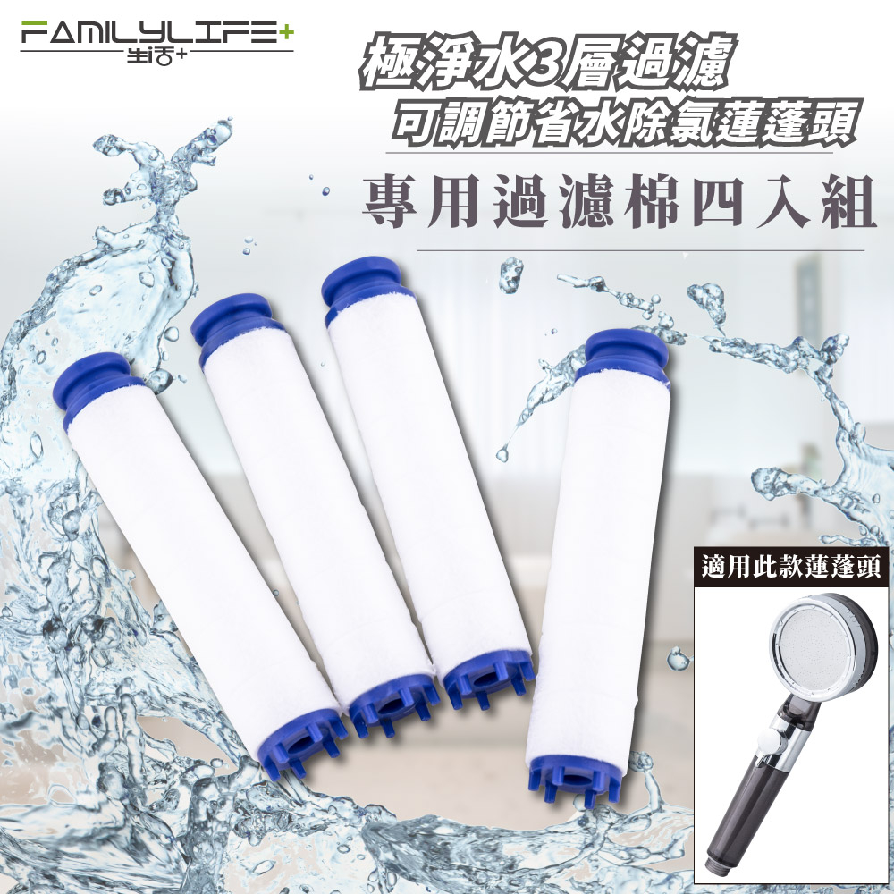 【FL生活+】極淨水3層過濾可調節省水除氯蓮蓬頭 專用棉條(4入裝)