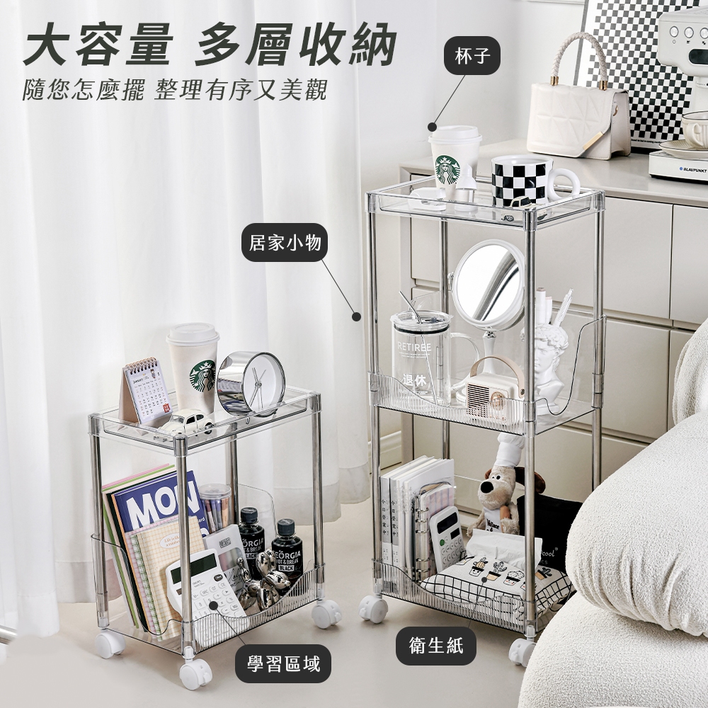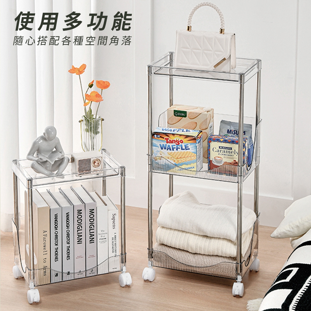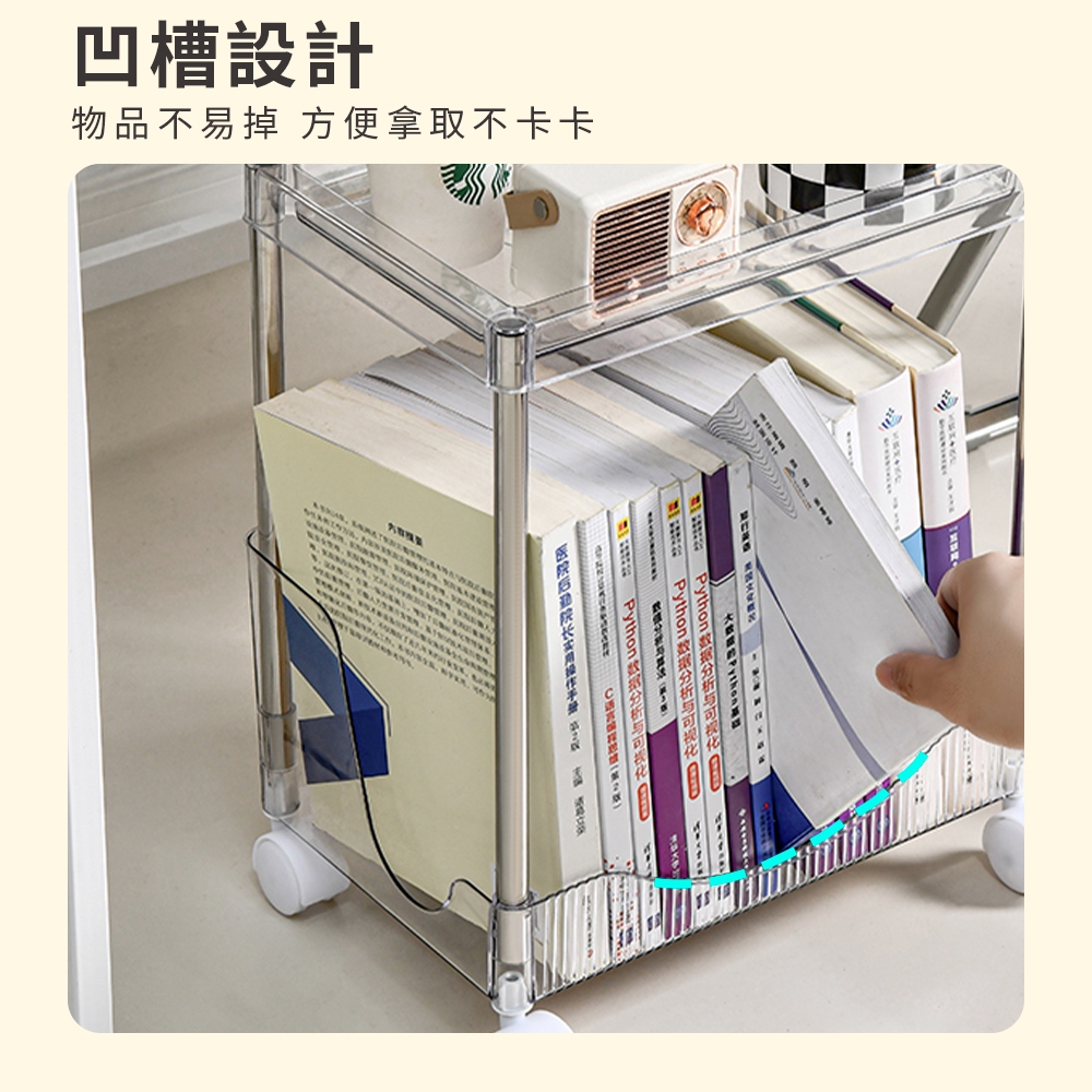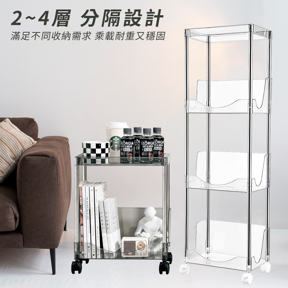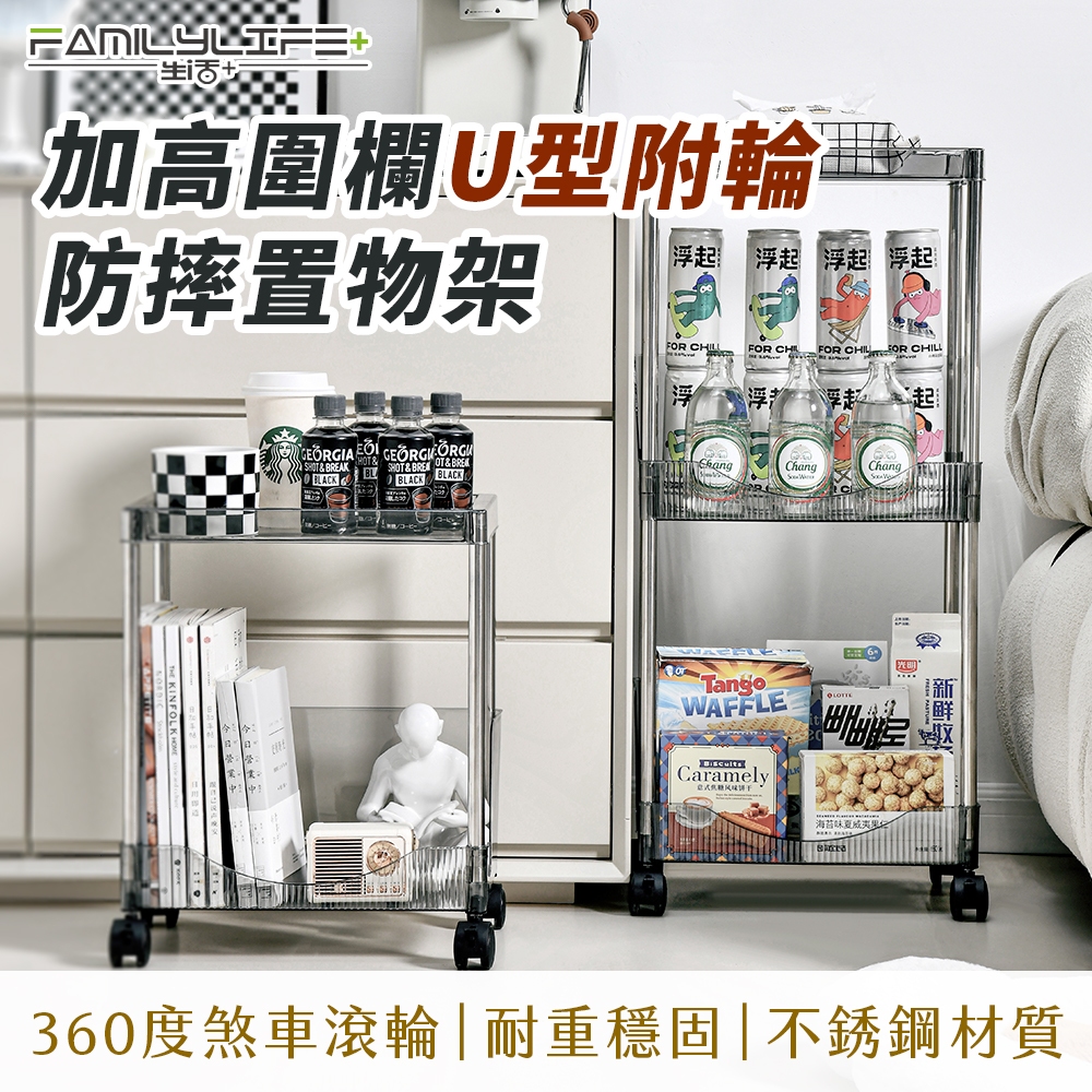 【FL生活+】加高圍欄U型附輪防摔置物架-2~4層款 手推車 推車置物架 收納架 廚房收納架 層架 縫隙架 簡易架書4層款-透明灰(超取限1入)|4層款-透明綠(超取限1入)|4層款-透明白(超取限1入)Shelves & RacksFL生活+ 官方直營旗艦店