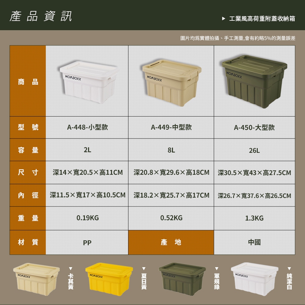 【FL生活+】工業風高荷重附蓋收納箱 收納盒 可疊加收納籃 工具箱 工具盒 頂部可置物 三種尺寸 四種顏色 戶外露營箱448小型款丨軍規綠(超取限4入)|448小型款丨純潔白(超取限4入)|448小型款丨夏日黃(超取限4入)|448小型款丨卡其黃(超取限4入)|449中型款丨軍規綠(超取限2入)|449中型款丨純潔白(超取限2入)|449中型款丨夏日黃(超取限2入)|449中型款丨卡其黃(超取限2入)|450大型款丨軍規綠(超取限1入)|450大型款丨純潔白(超取限1入)|450大型款丨夏日黃(超取限1入)|450大型款丨卡其黃(超取限1入)Storage Boxes, Bags & BasketsFL生活+ 官方直營旗艦店