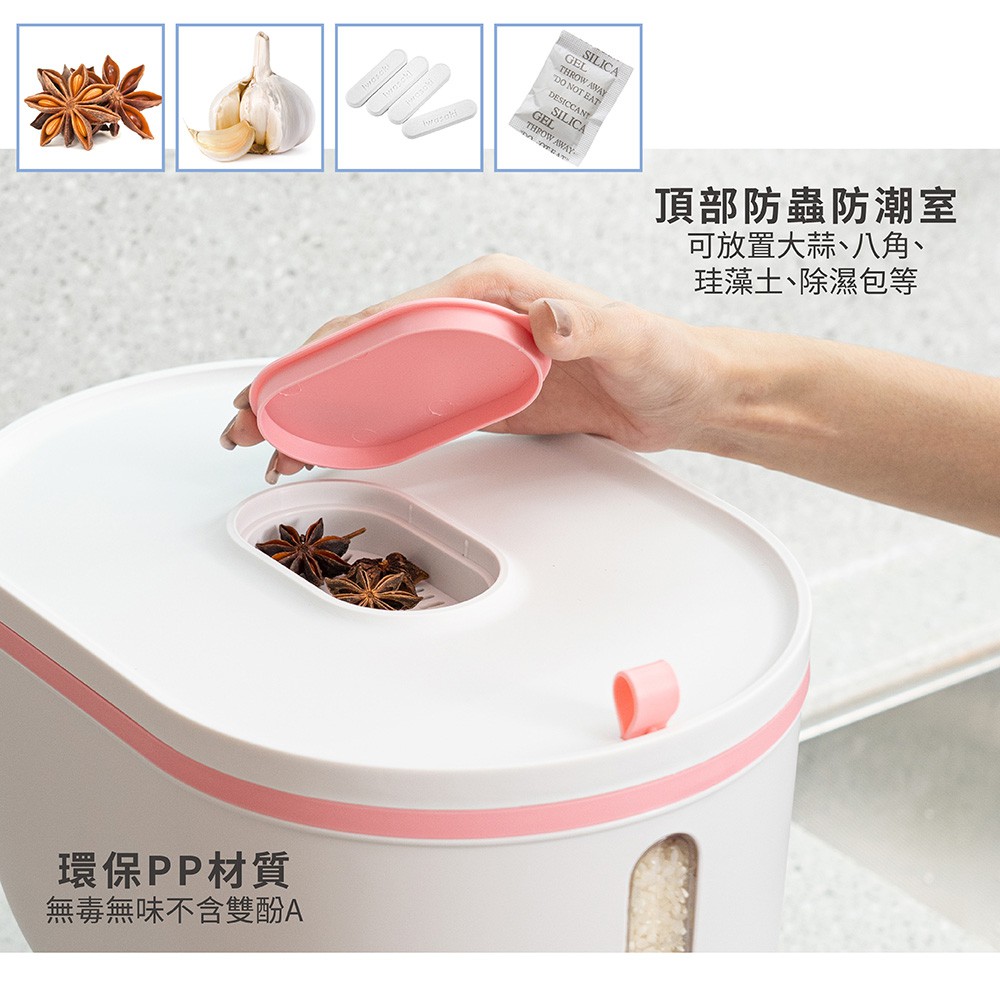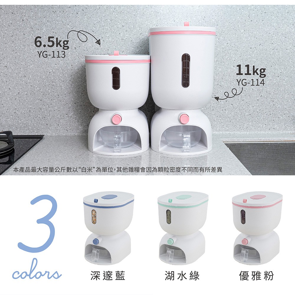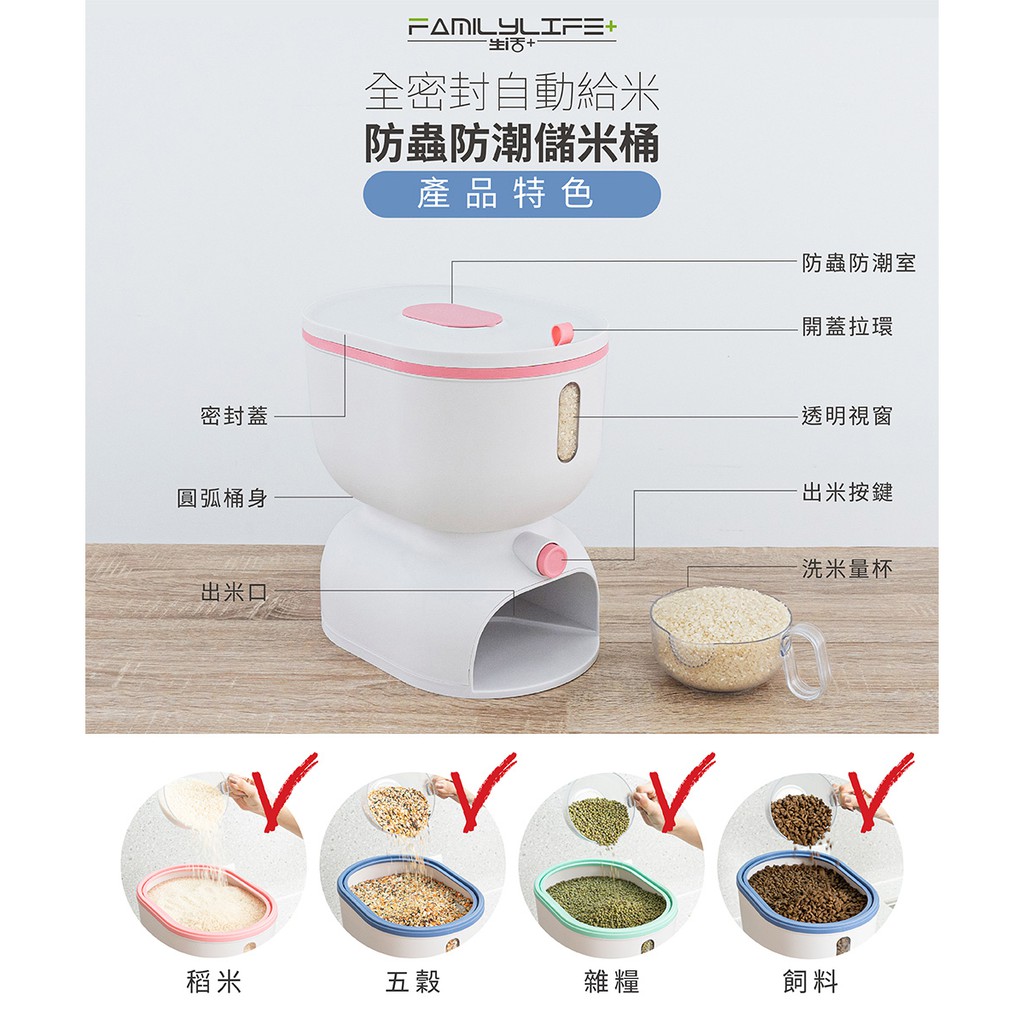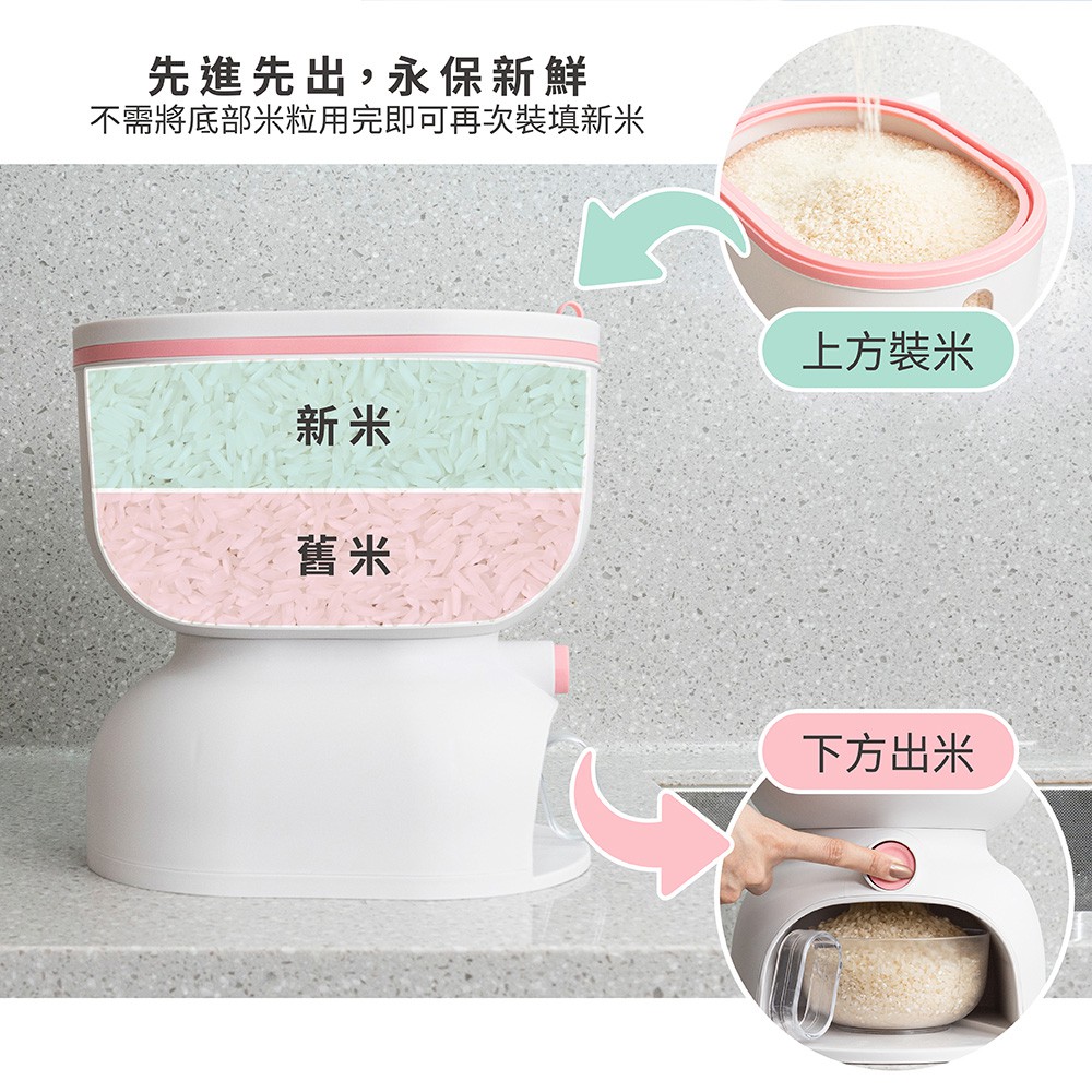 【FL生活+】全密封自動給米防蟲防潮儲米桶 防潮儲米桶 防潮米桶 防蟲米桶 飼料桶 兩種尺寸 6公斤 11公斤11公斤-優雅粉(超取限1入)|11公斤-湖水綠(超取限1入)Food StorageFL生活+ 官方直營旗艦店