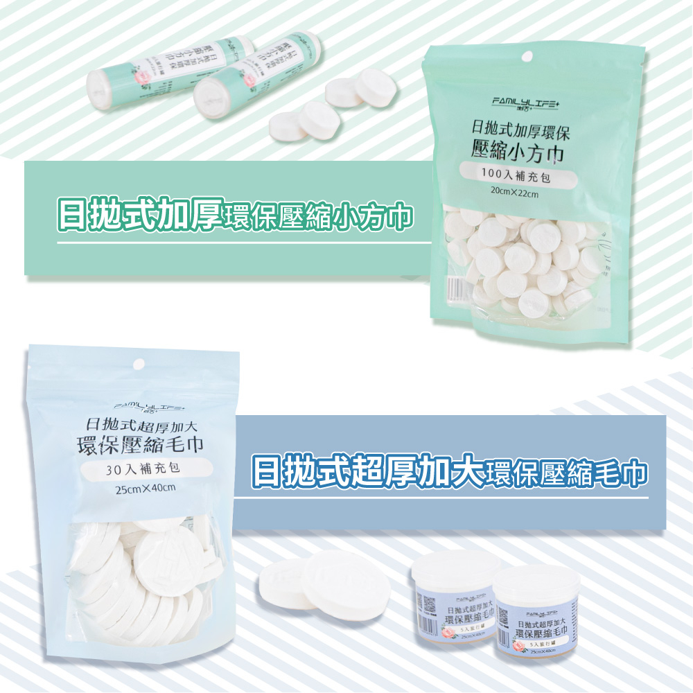 【FL生活+】拋棄式加厚環保壓縮小方巾/毛巾 拋棄式毛巾 紗布巾 一次性洗臉巾 旅行毛巾 糖果毛巾 25×40公分5入旅行罐(25*40公分)-毛巾|30入補充包Towels & BathrobesFL生活+ 官方直營旗艦店
