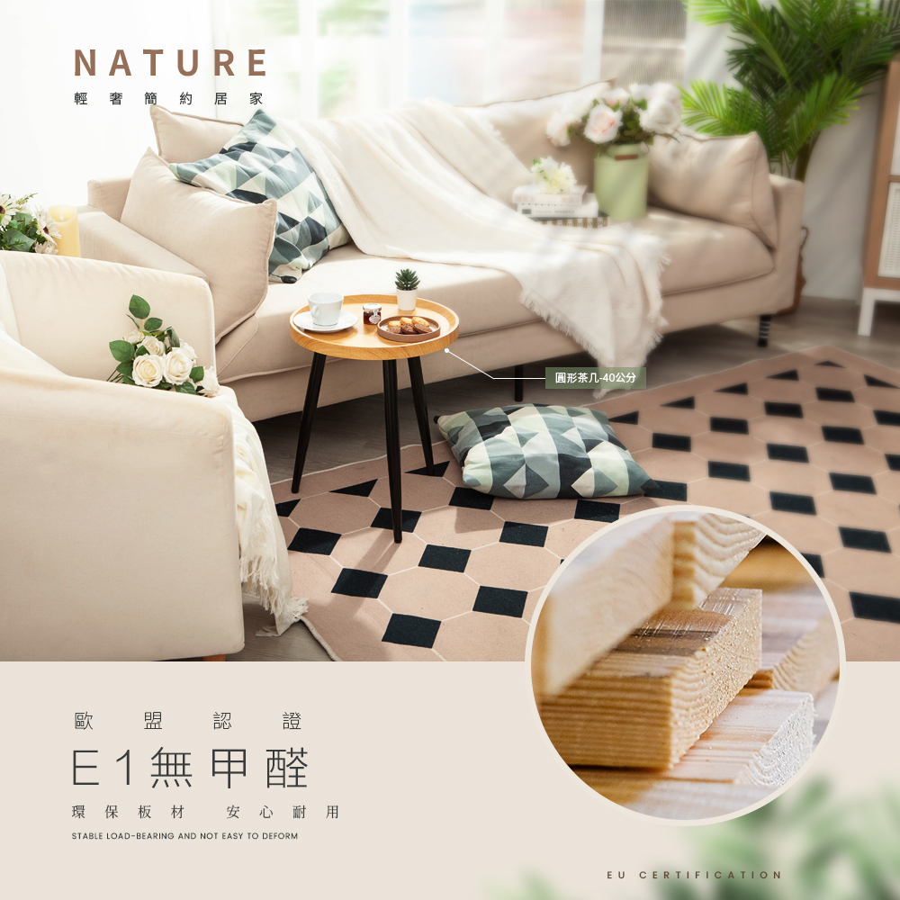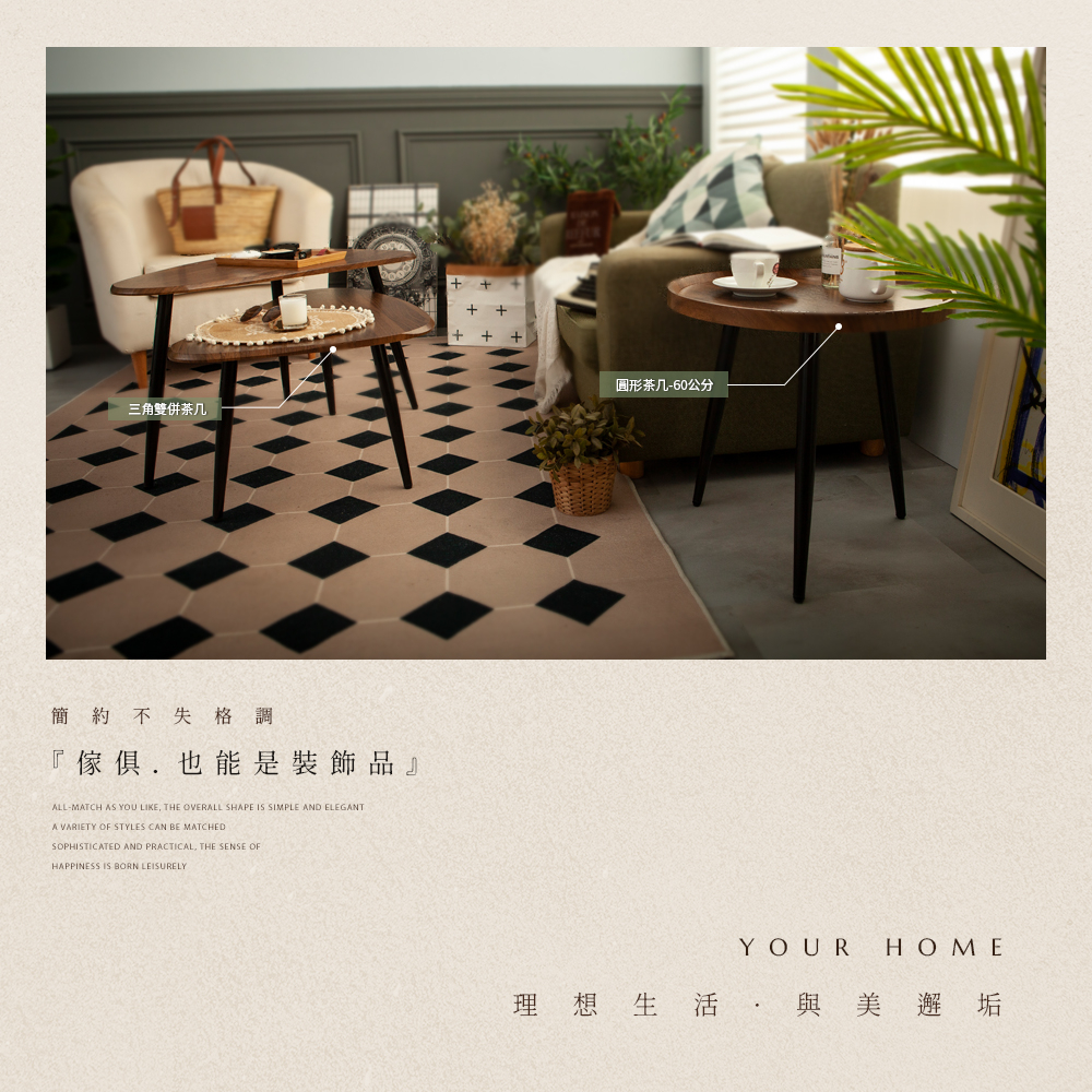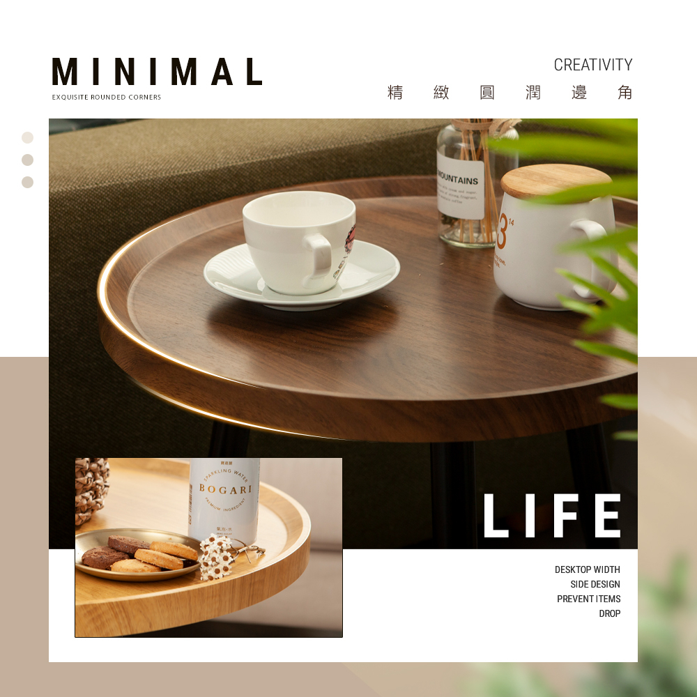 • 【FL生活+】木冶山居 圓形茶几-40公分 單層 雙層(WO-001) 鋼化加粗烤漆桌腳 上層防摔圍檔設計 邊桌 邊几