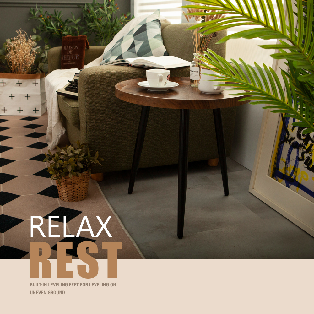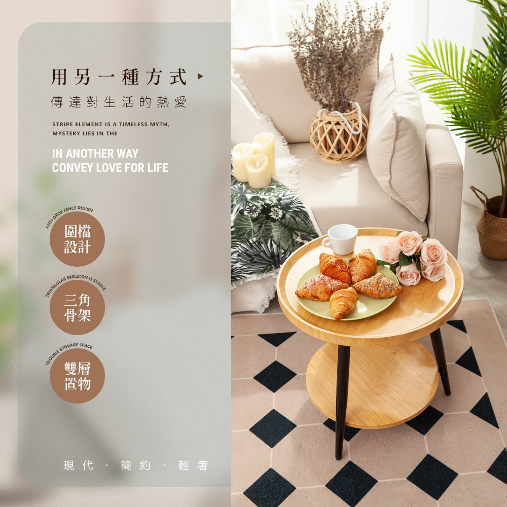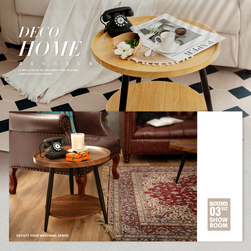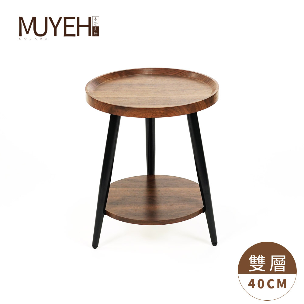 【FL生活+】木冶山居 圓形茶几-40公分 單層 雙層(WO-001) 鋼化加粗烤漆桌腳 上層防摔圍檔設計 邊桌 邊几