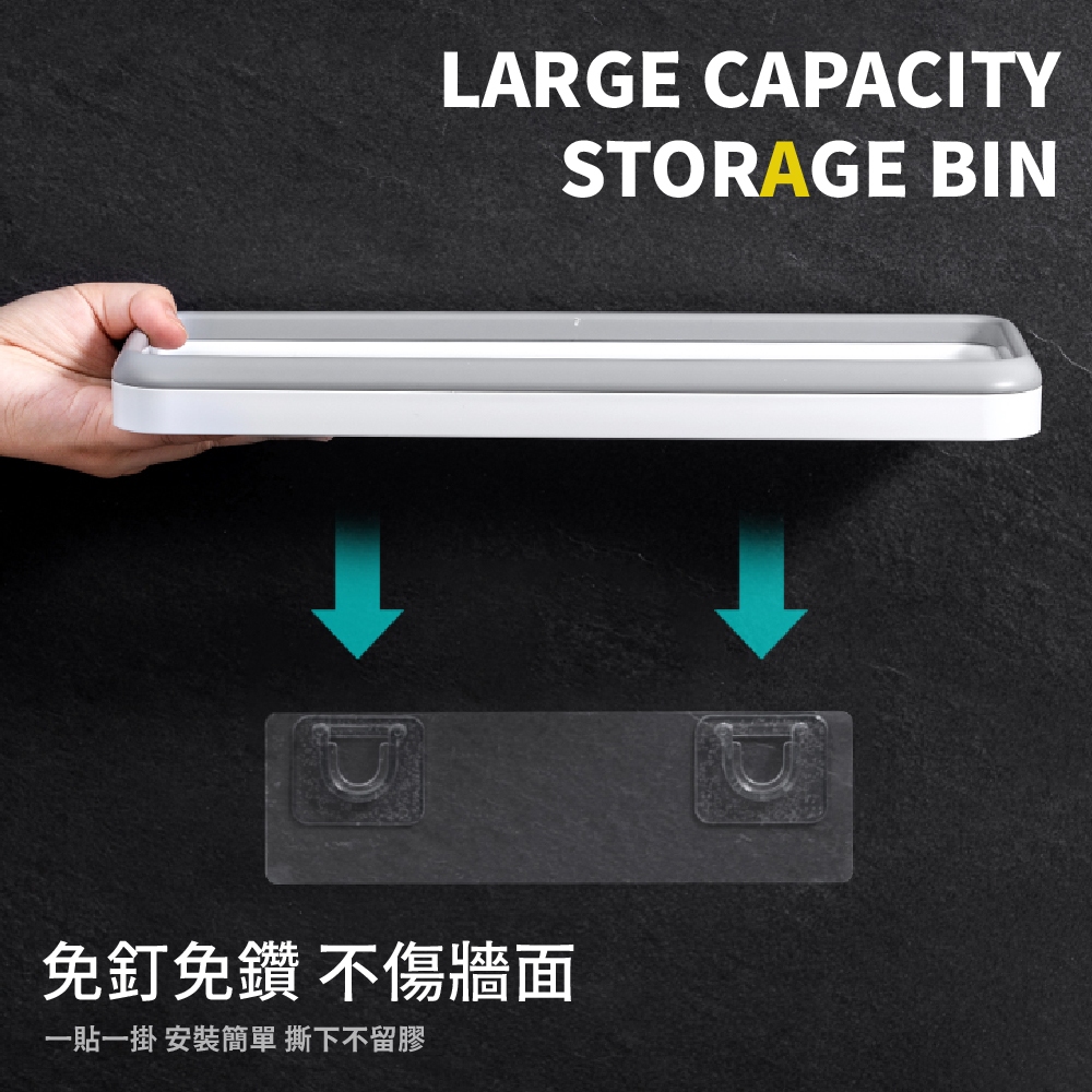 【FL生活+】無痕壁掛收納盒-衛浴無痕貼系列 浴室置物架 浴室收納架 無痕貼置物架 無痕貼收納架 四方架 可搭配洞洞板