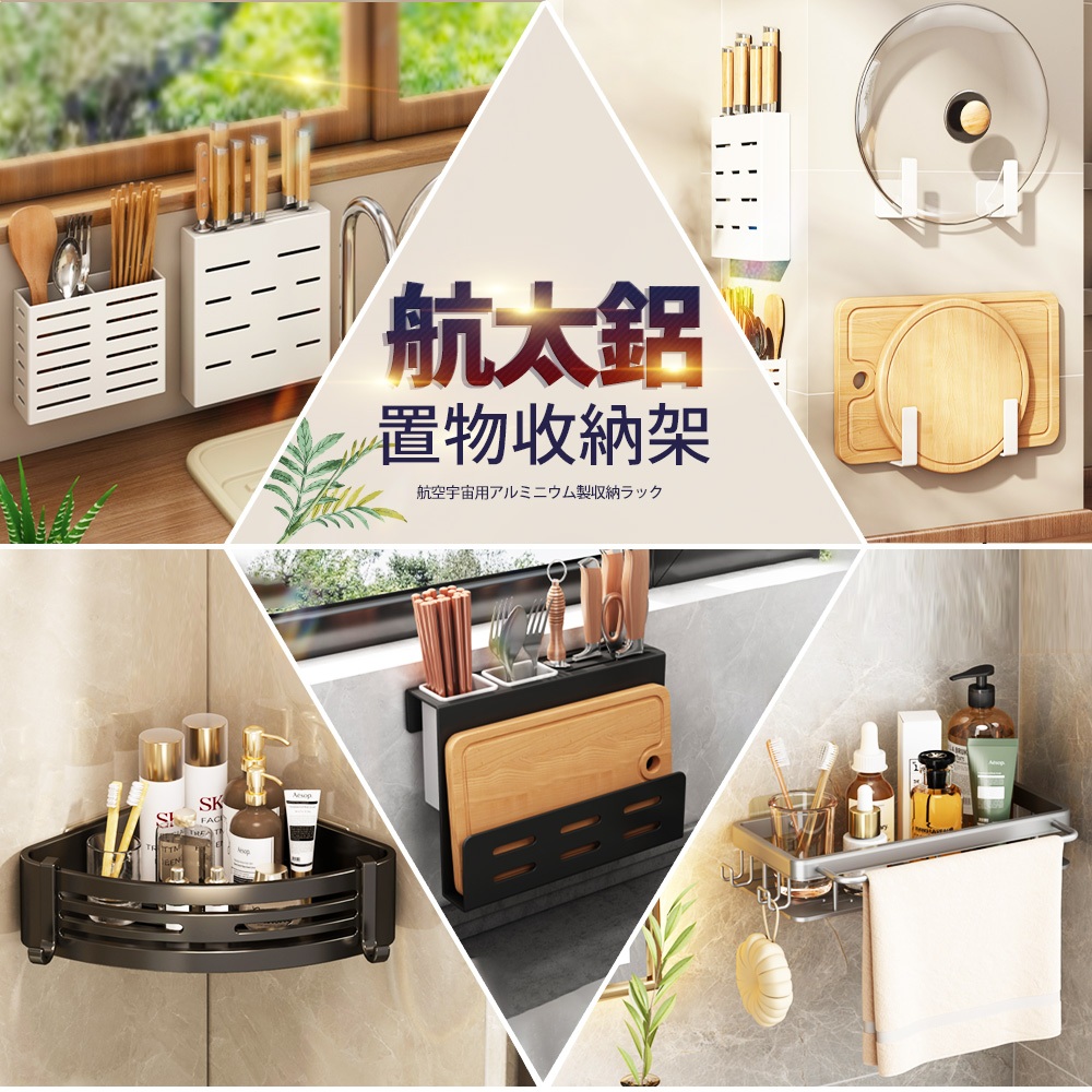 【FL生活+】航太鋁廚房置物架 衛浴收納架 衛生紙架 牙刷架 吹風機架 鍋蓋架 刀具架 掛勾架 抺布架 瀝水置物架