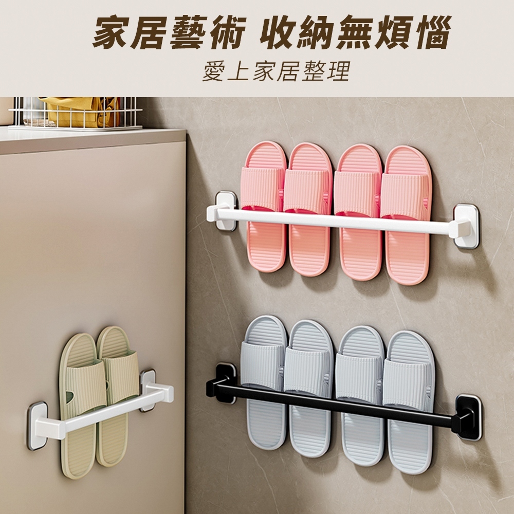 【FL生活+】航太鋁無痕壁掛式鞋架 免打孔拖鞋架 拖鞋置物架 室內拖鞋架 無痕拖鞋架 浴室鞋架 拖鞋鞋架 門後鞋架