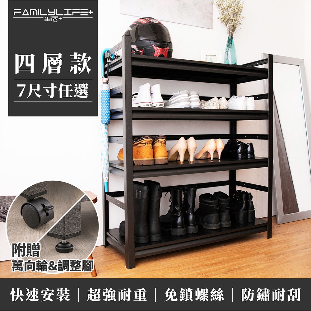 【FL生活+】快裝式岩熔碳鋼四層耐重置物架系列 7種尺寸任選 角鋼架 鐵架 貨架 鐵力士架 黑色角鋼層架 陳列架 層櫃四層耐重置物架40*70*118公分|四層耐重置物架40*80*118公分|四層耐重置物架40*100*118公分|四層耐重置物架30*50*118公分|四層耐重置物架30*60*118公分|四層耐重置物架40*50*118公分|四層耐重置物架40*60*118公分Shelves & RacksFL生活+ 官方直營旗艦店