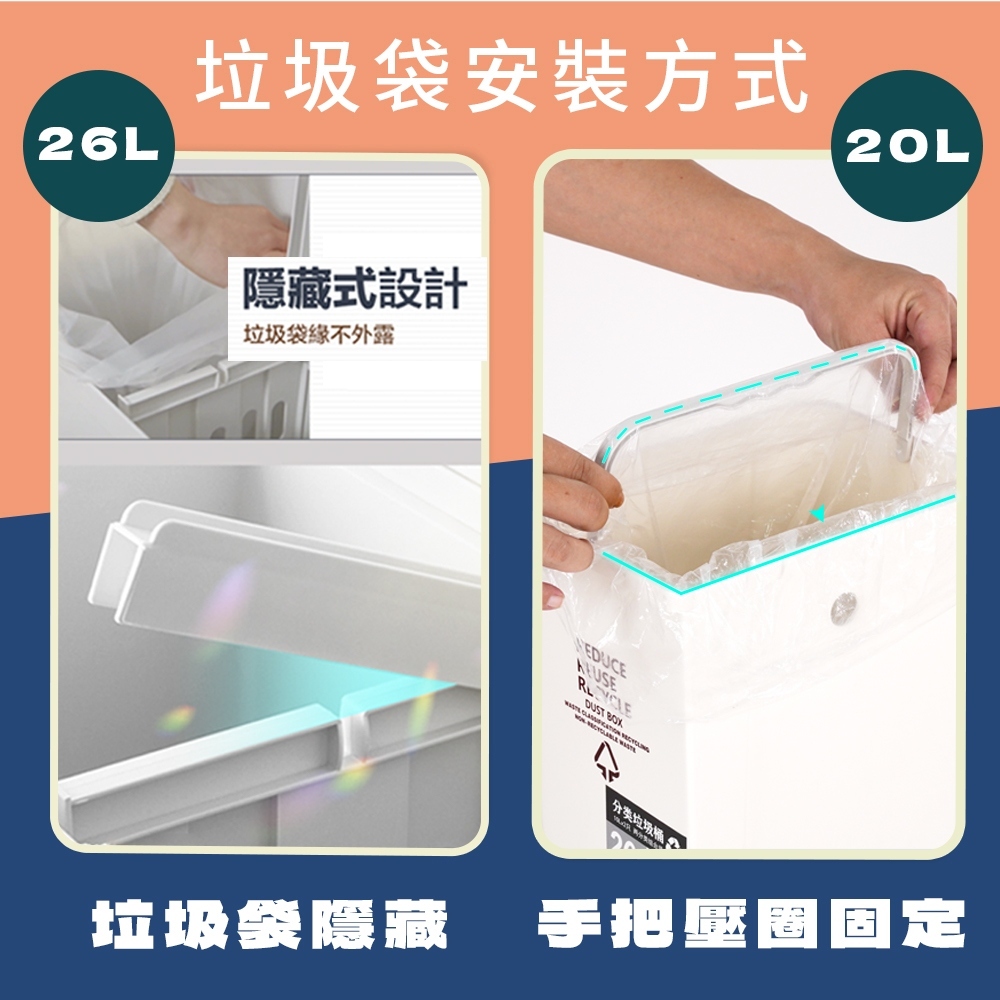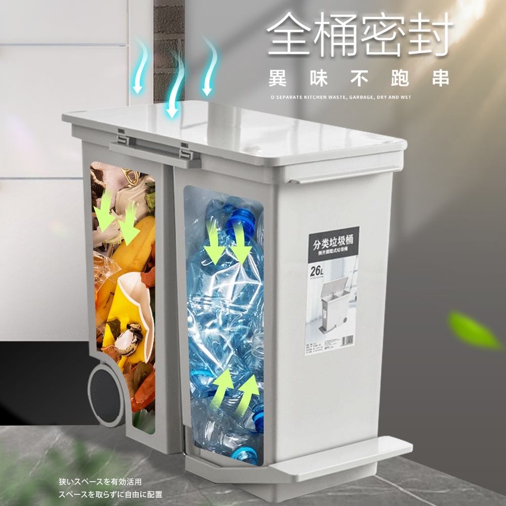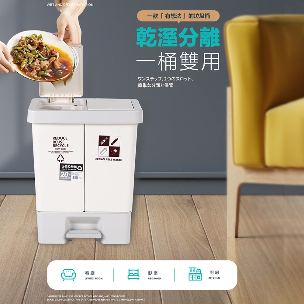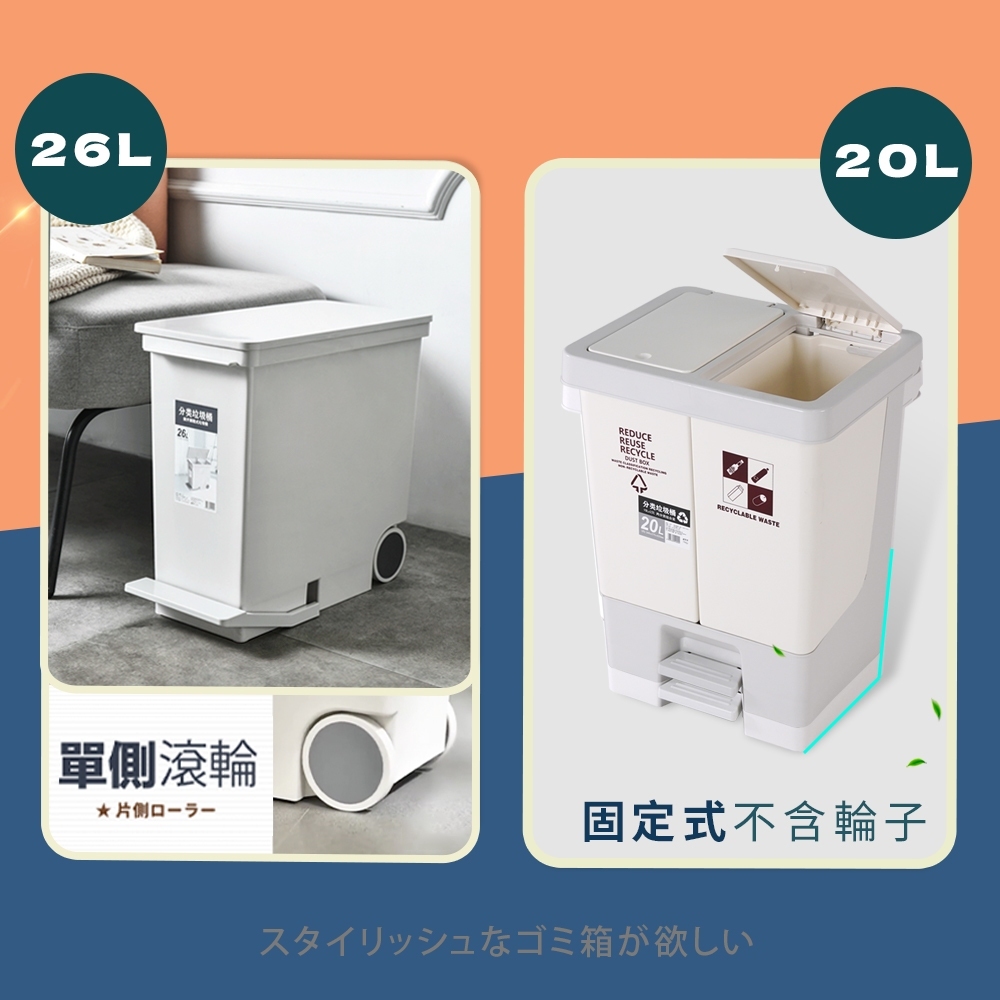 【FL生活+】免髒手腳踏/彈蓋2用雙槽分類垃圾桶20L 26L 回收垃圾桶 垃圾桶 窄垃圾桶 腳踩垃圾桶 夾縫垃圾桶