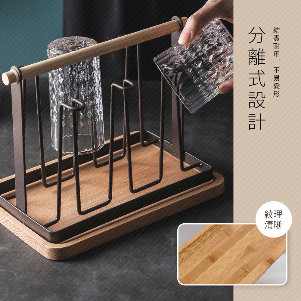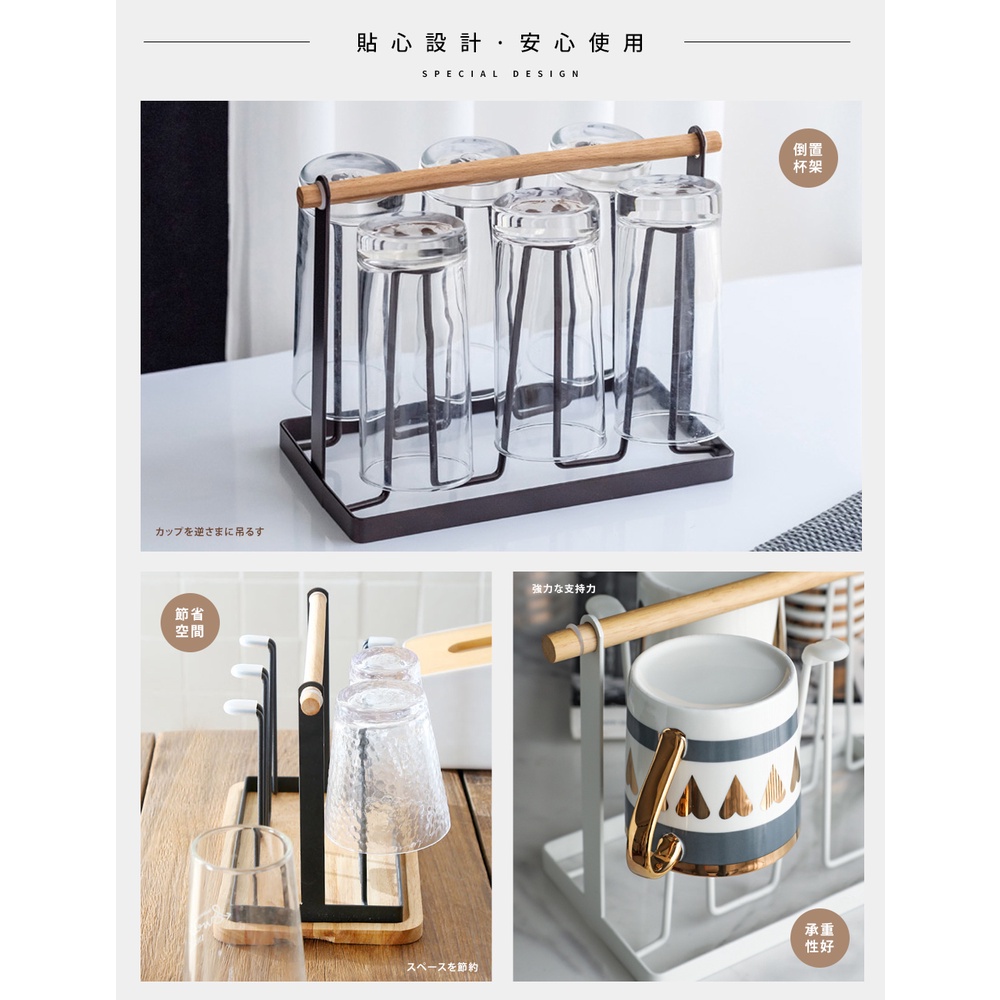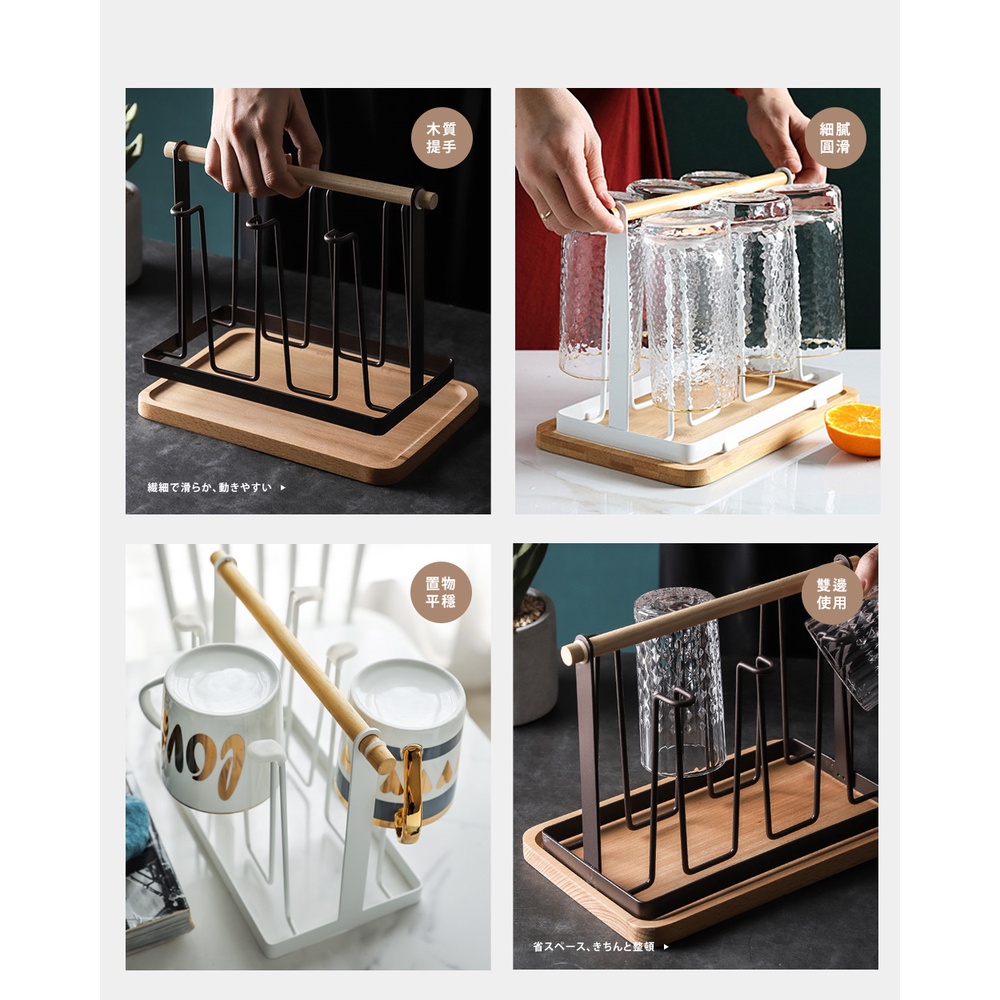 【FL生活+】日式鐵藝瀝水杯架(A-093)分杯架 吊杯架 廚房杯架 廚房瀝水杯架 掛杯架 收納杯架 晾杯架 曬杯架白色|白色+木盤|木盤|黑色|黑色+木盤Kitchen RacksFL生活+ 官方直營旗艦店