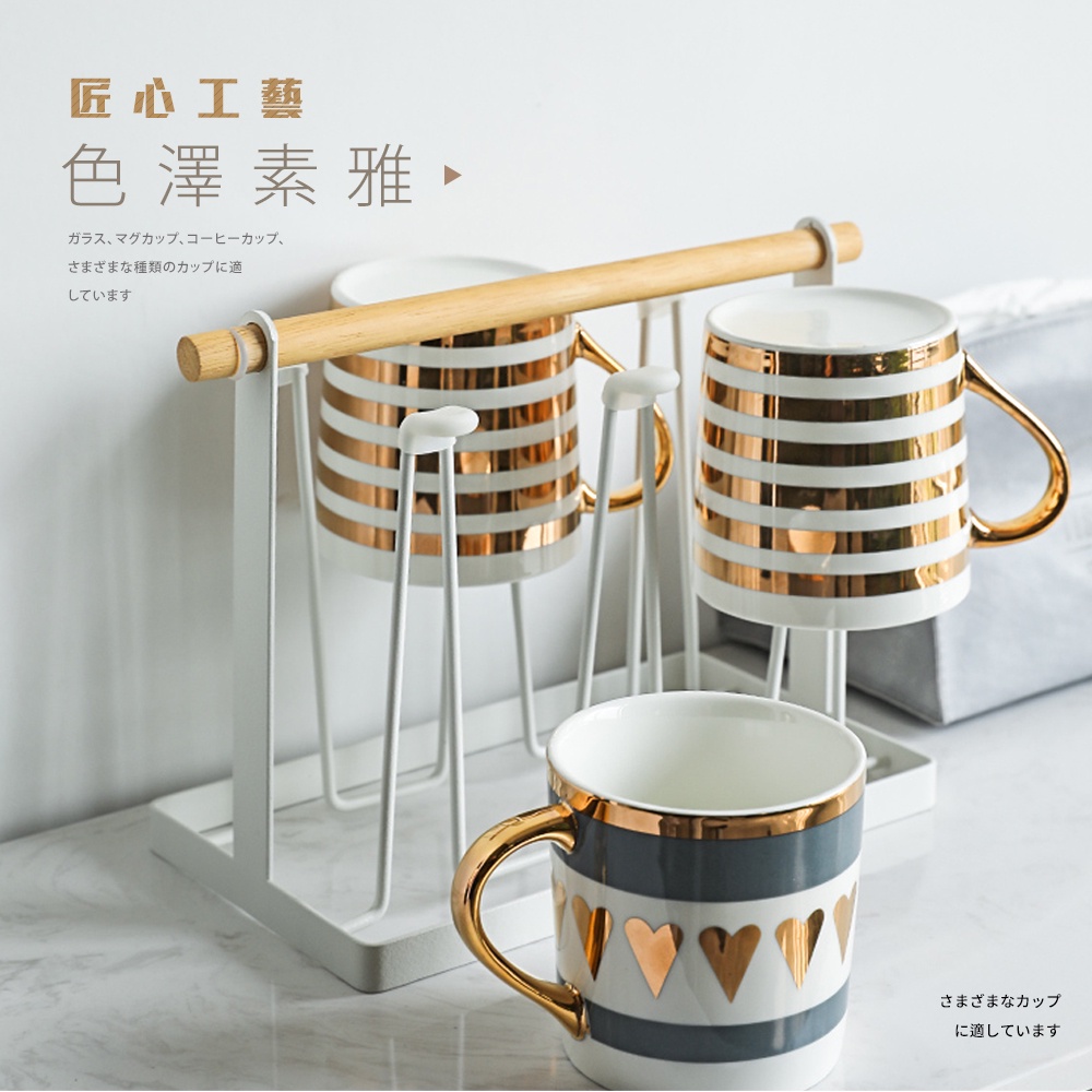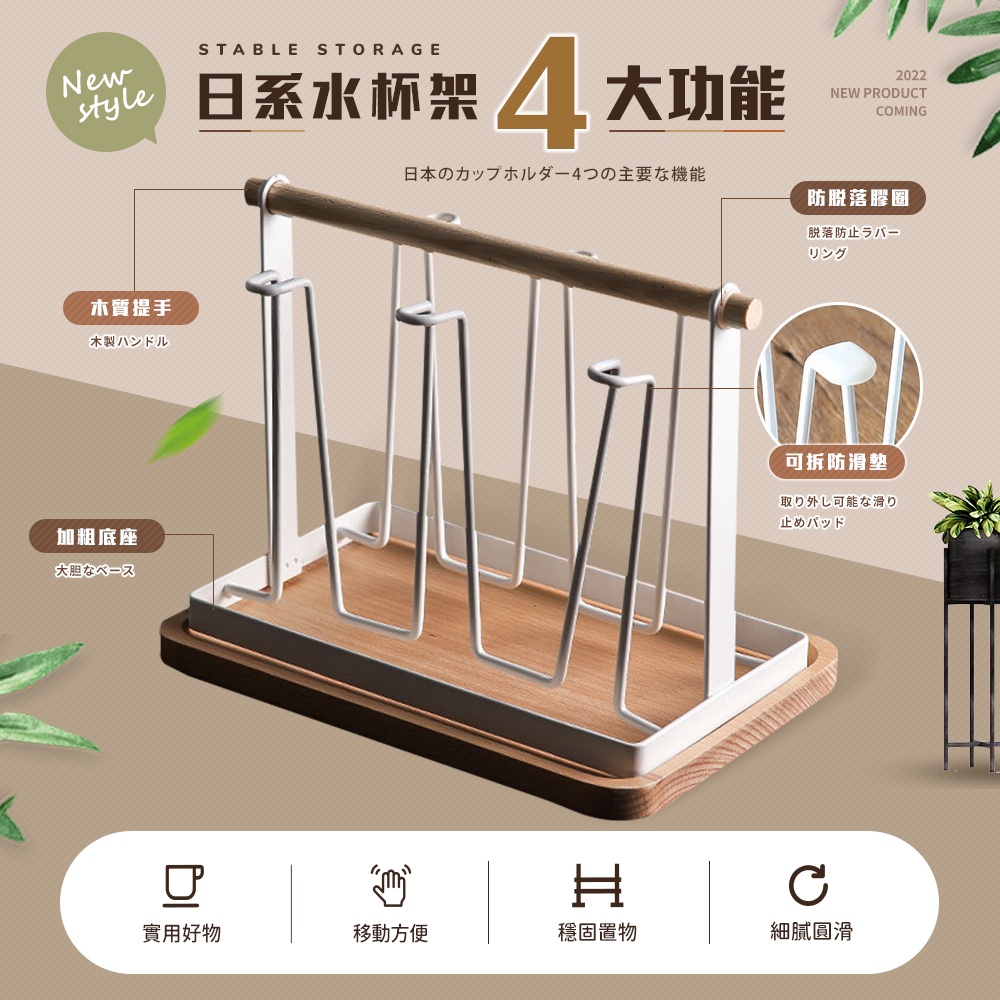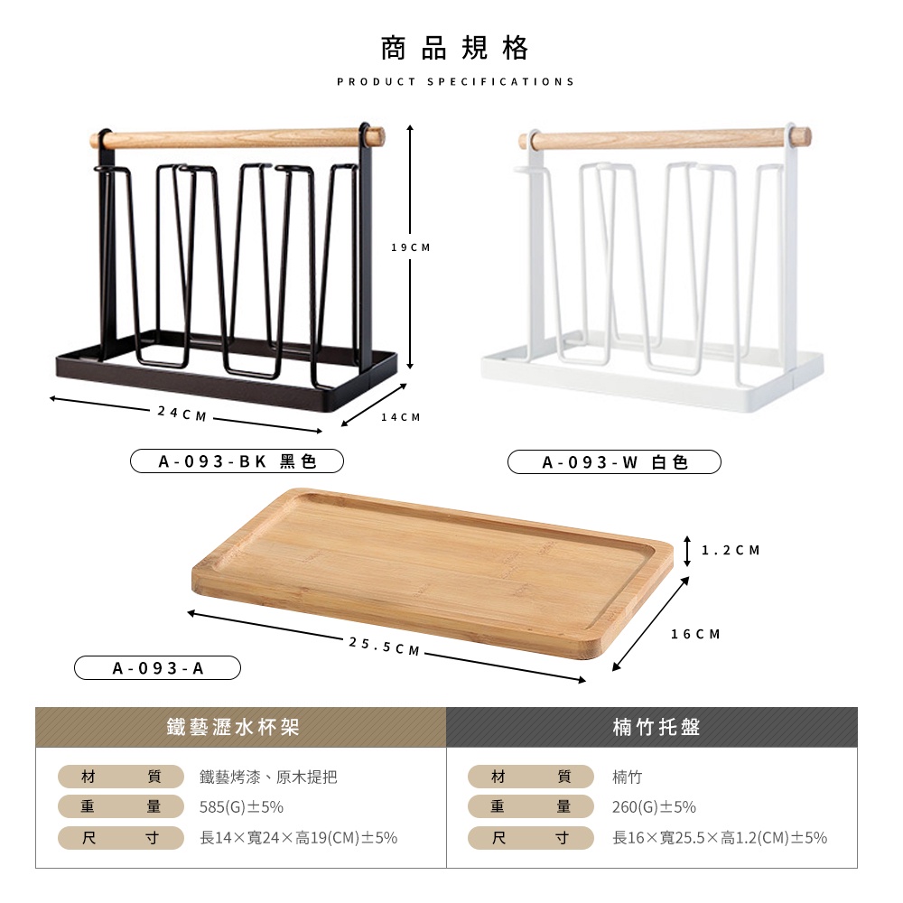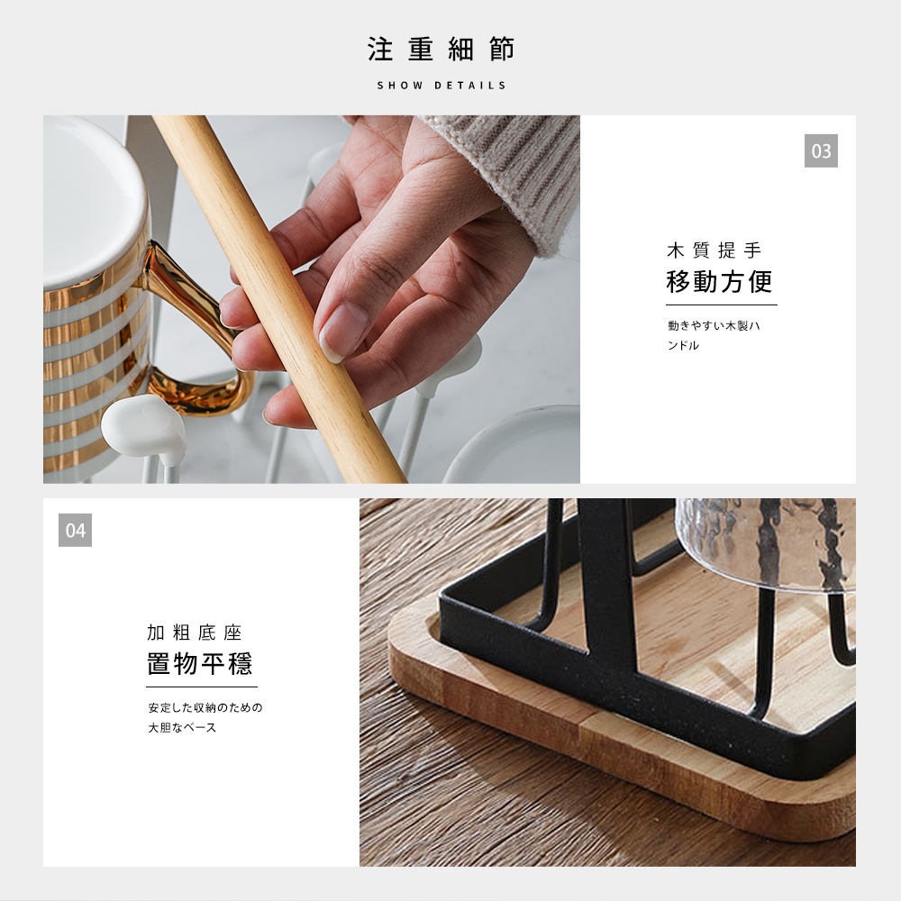 【FL生活+】日式鐵藝瀝水杯架(A-093)分杯架 吊杯架 廚房杯架 廚房瀝水杯架 掛杯架 收納杯架 晾杯架 曬杯架白色|白色+木盤|木盤|黑色|黑色+木盤Kitchen RacksFL生活+ 官方直營旗艦店