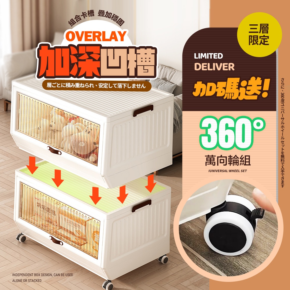 【FL生活+】多功能可疊加附輪摺疊收納籃 收納箱 面寬52公分 附滾輪 38.5公升 收納盒 洗衣籃附隔板52面寬丨38.5L|52面寬丨38.5LX2入組|52面寬丨38.5LX4入組Storage Boxes, Bags & BasketsFL生活+ 官方直營旗艦店