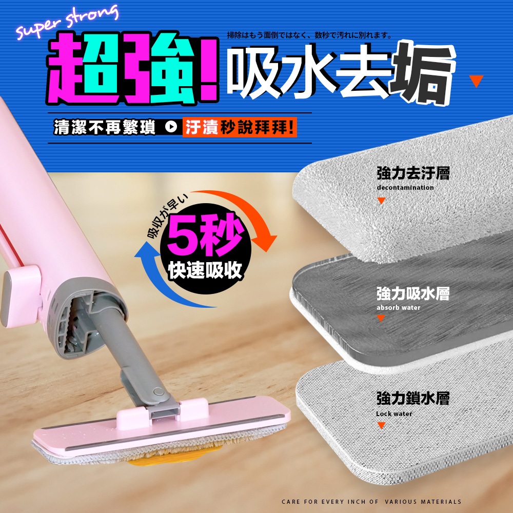• 【FL生活+】免髒手360度萬向小拖把-拖把布 5入組