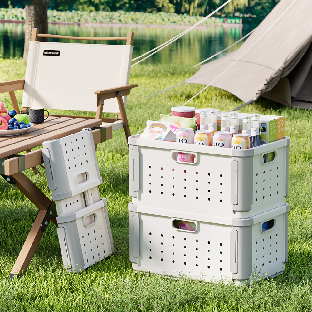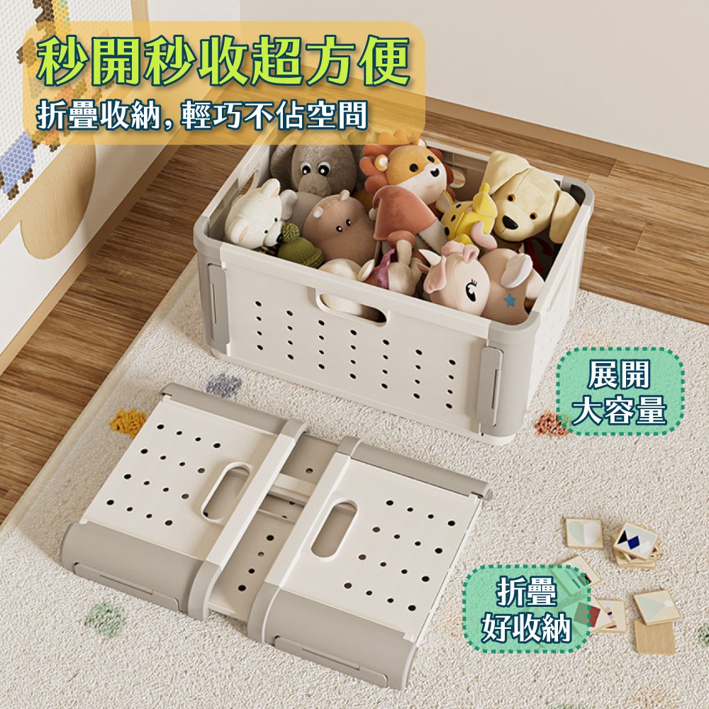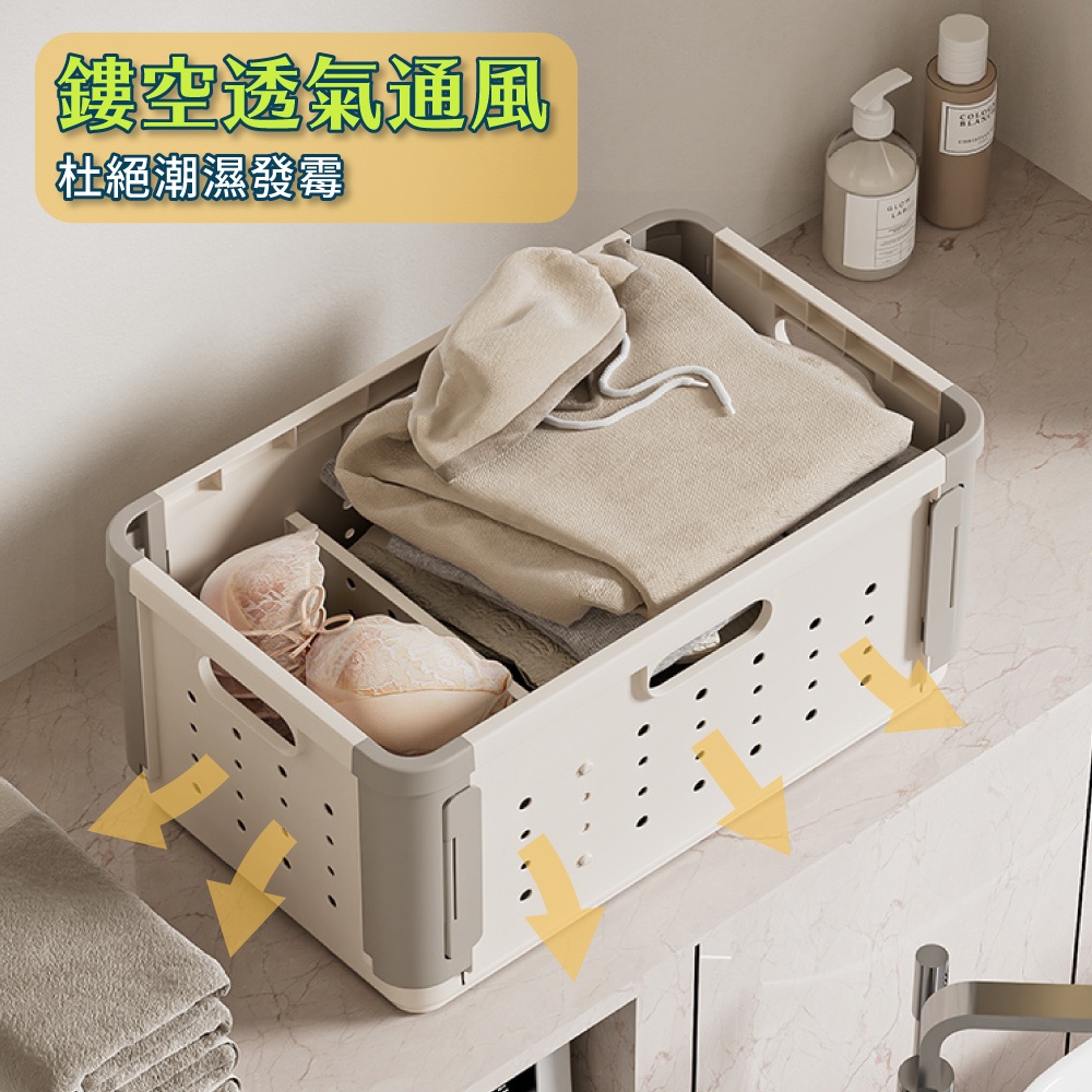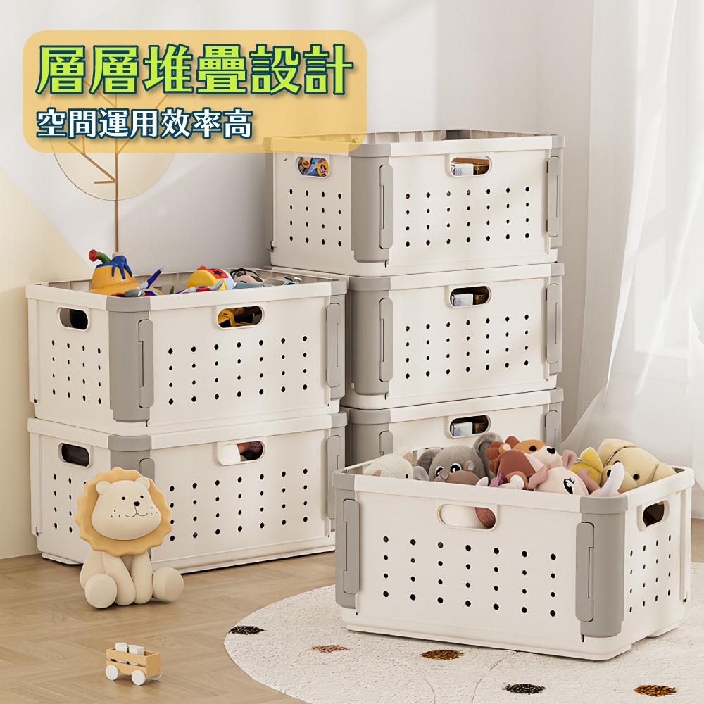 【FL生活+】多功能可疊加附輪摺疊收納籃 收納箱 面寬52公分 附滾輪 38.5公升 收納盒 洗衣籃附隔板