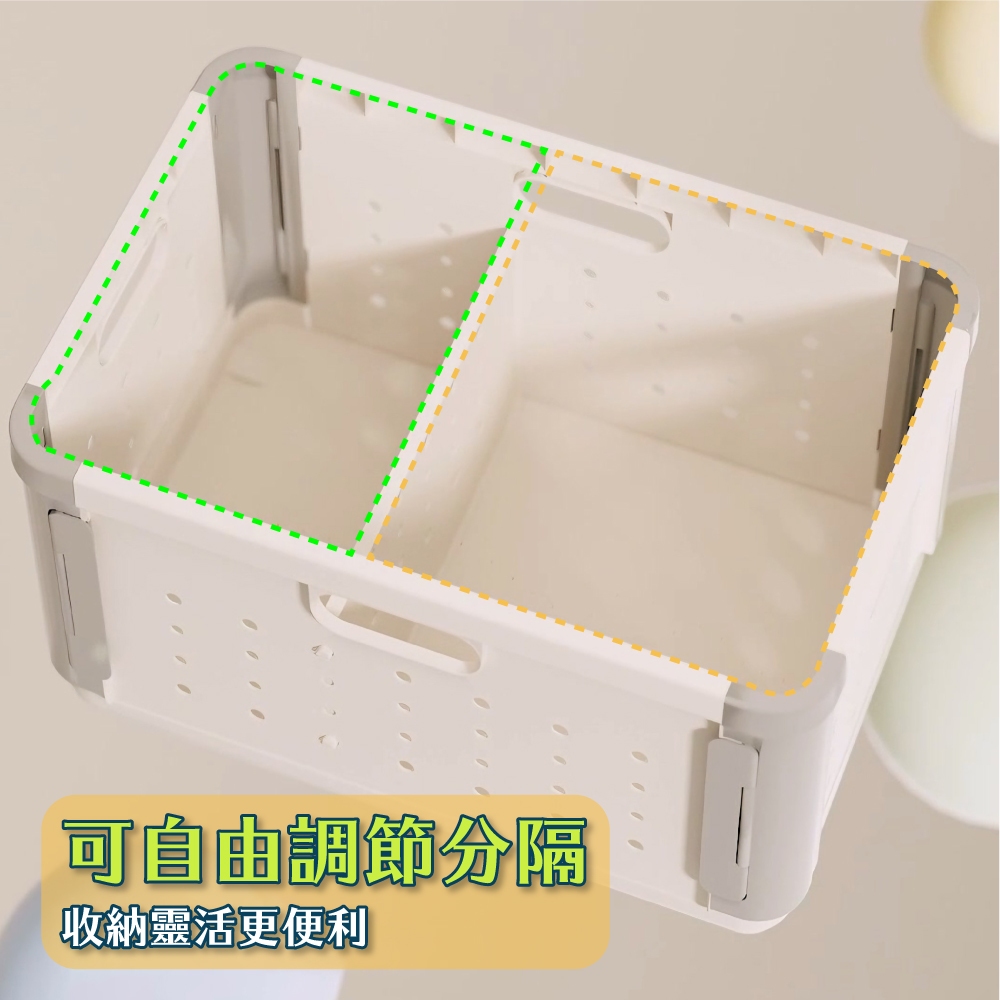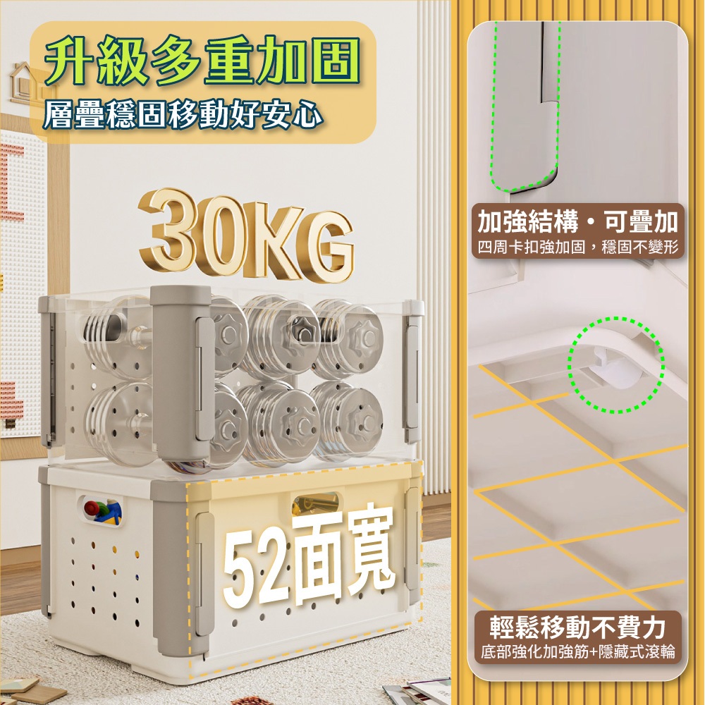 • 【FL生活+】多功能可疊加附輪摺疊收納籃 收納箱 面寬52公分 附滾輪 38.5公升 收納盒 洗衣籃附隔板