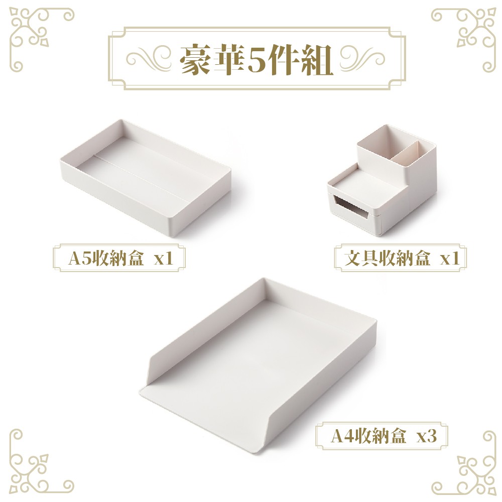 【FL生活+】超值5件組 文件夾收納盒 文件收納 文件架 文具收納盒 桌上收納 桌上收納盒 辦公室收納 桌上文件收納超值5件組-文青白|A4(1入)-文青白|A5(1入)-文青白|文具收納盒(1入)-文青白Desk OrganizersFL生活+ 官方直營旗艦店