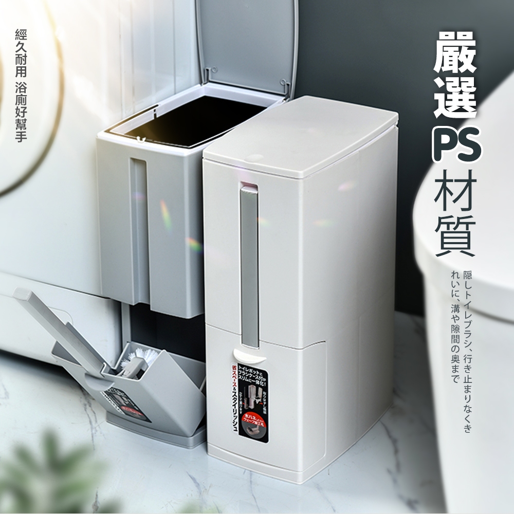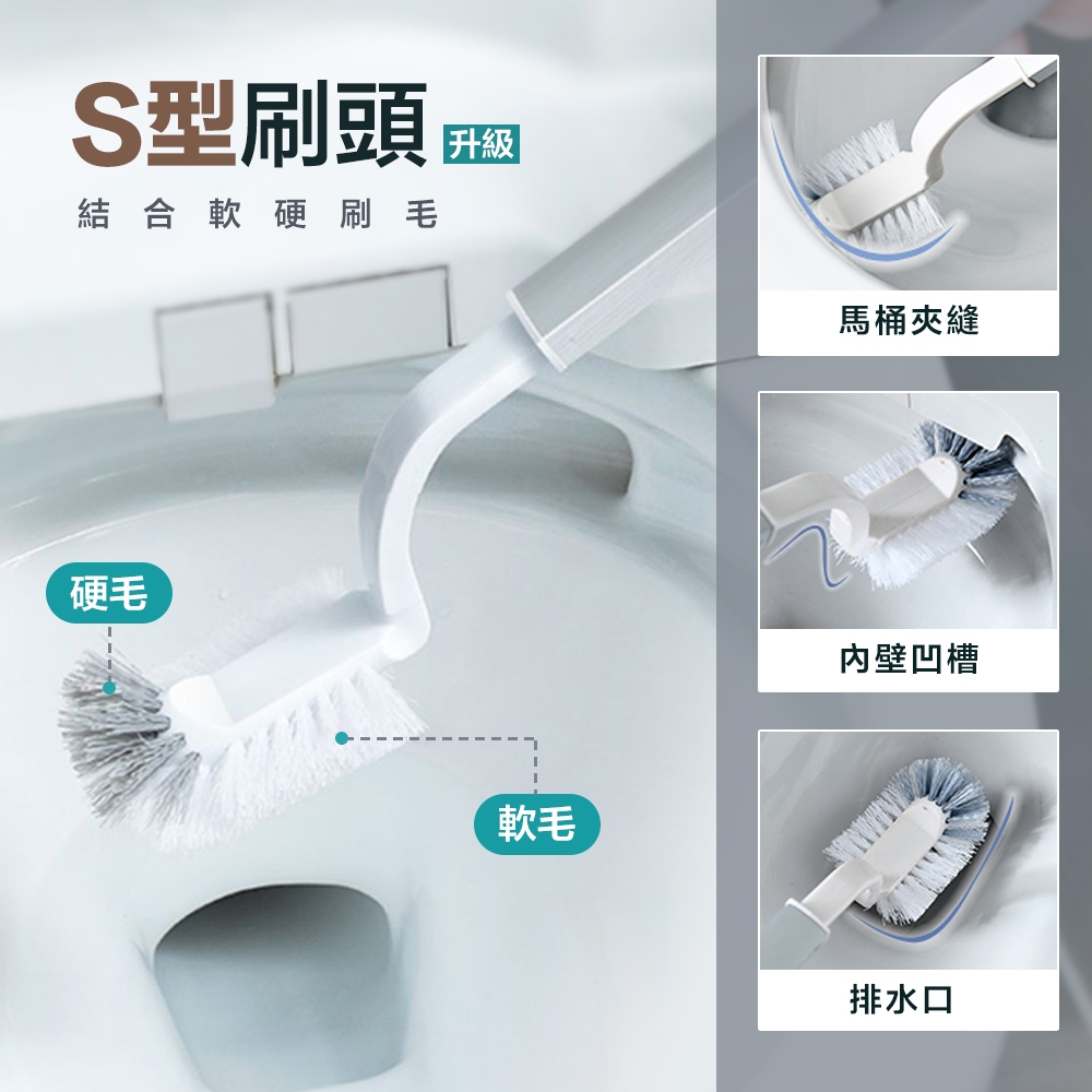 【FL生活+】多功能彈蓋式縫隙型馬桶刷垃圾桶專用配件-S型馬桶刷馬桶刷-灰色|馬桶刷-白色|杏仁白Cleaning BrushesFL生活+ 官方直營旗艦店