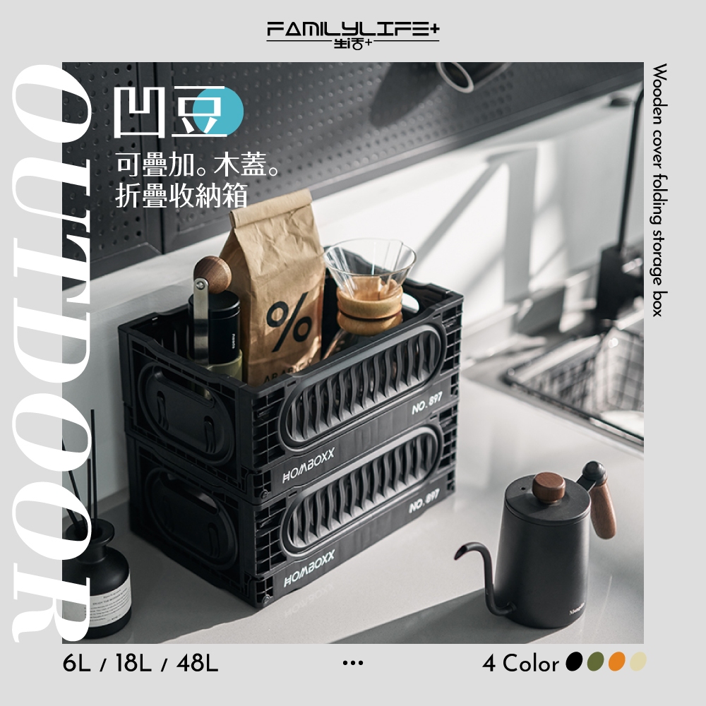 【FL生活+】6/18/48公升凹豆可疊加木蓋折疊收納箱 附木板蓋 露營收納箱 收納盒 工具箱 上掀蓋 上掀式收納箱445丨6公升丨星耀黑(超取4入)|445丨6公升丨軍規綠(超取4入)|445丨6公升丨艷陽橘(超取4入)|445丨6公升丨卡其黃(超取4入)|446丨18公升丨星耀黑(超取1入)|446丨18公升丨軍規綠(超取1入)|446丨18公升丨艷陽橘(超取1入)|446丨18公升丨卡其黃(超取1入)|447丨48公升丨星耀黑(限宅配)|447丨48公升丨軍規綠(限宅配)|447丨48公升丨艷陽橘(限宅配)|447丨48公升丨卡其黃(限宅配)Storage Boxes, Bags & BasketsFL生活+ 官方直營旗艦店