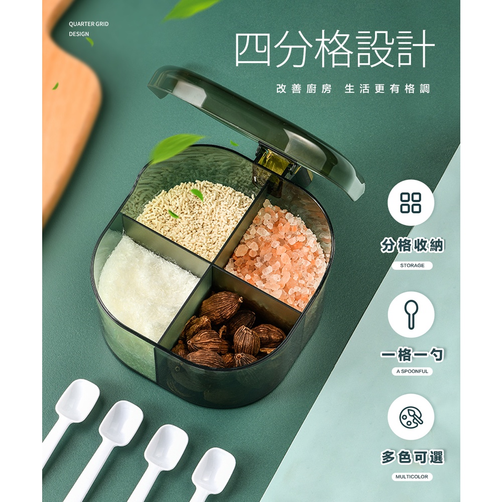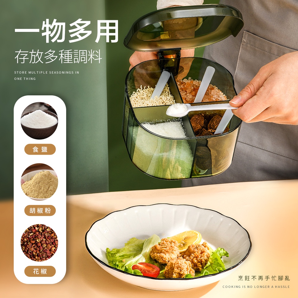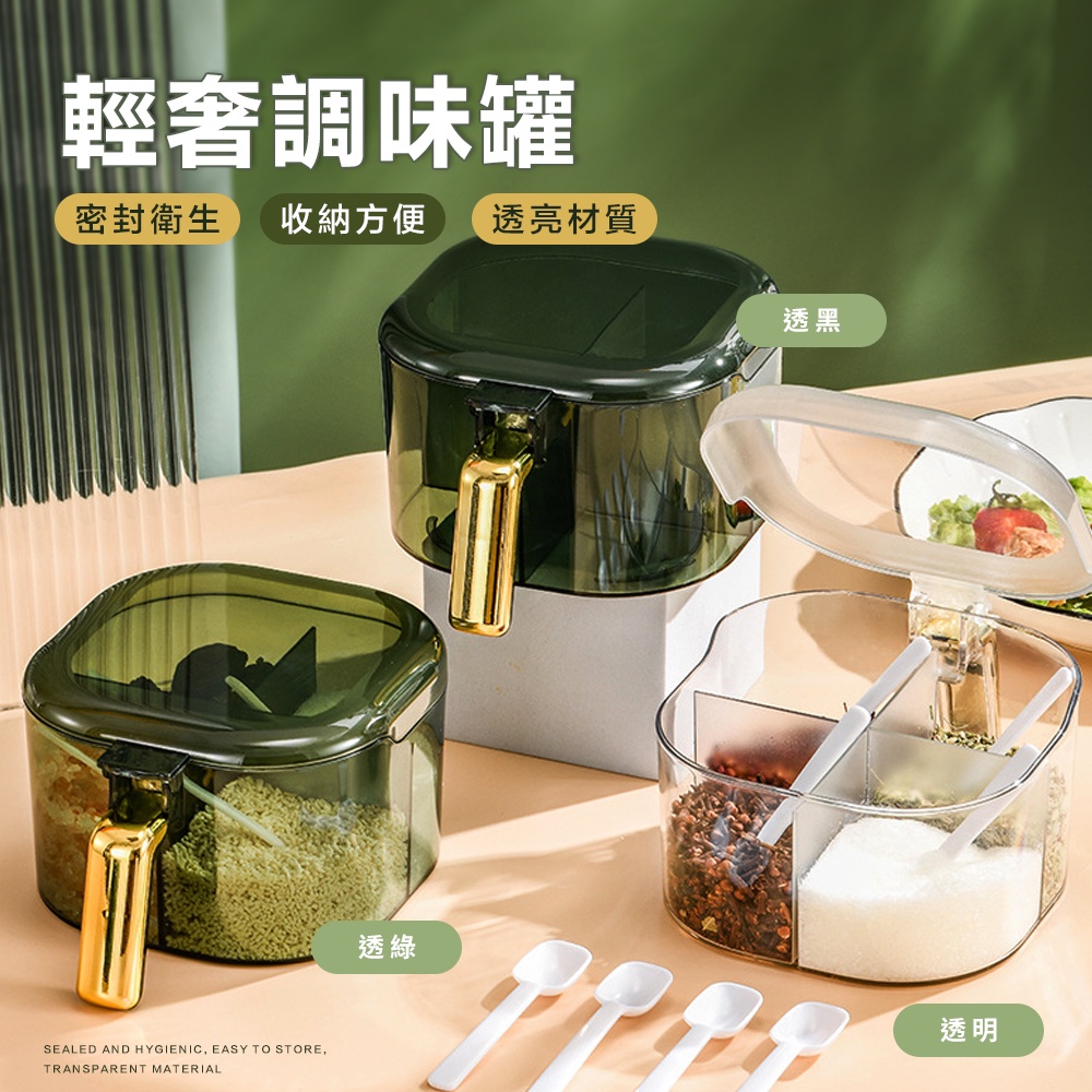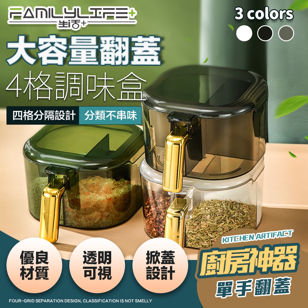 【FL生活+】大容量翻蓋 四格調味盒 三格調味盒 密封調味盒 密封調味罐 料理用具 玻璃調味罐 調味盒 調料盒 雙格調味透黑|透綠|透明Measuring Glasses & SpoonsFL生活+ 官方直營旗艦店