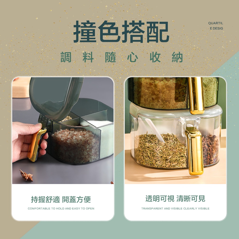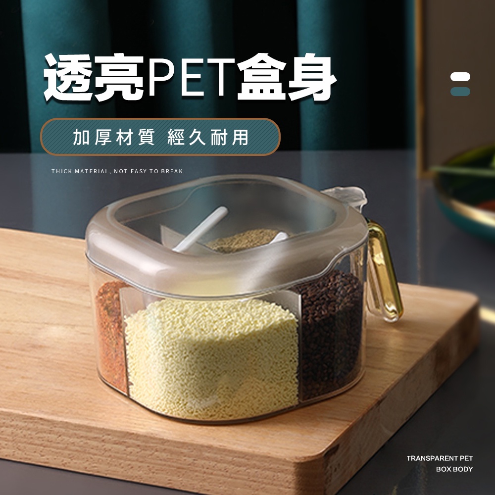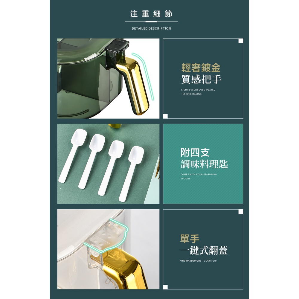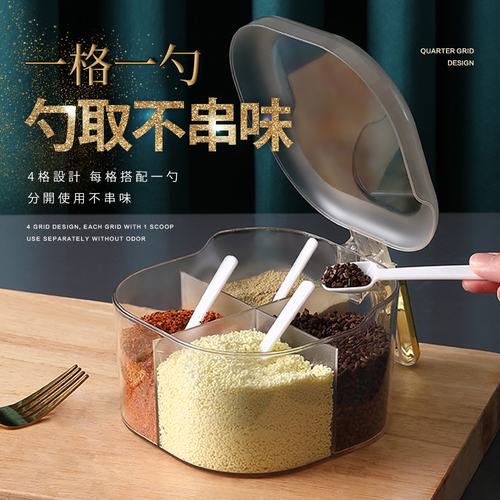 【FL生活+】大容量翻蓋 四格調味盒 三格調味盒 密封調味盒 密封調味罐 料理用具 玻璃調味罐 調味盒 調料盒 雙格調味透黑|透綠|透明Measuring Glasses & SpoonsFL生活+ 官方直營旗艦店