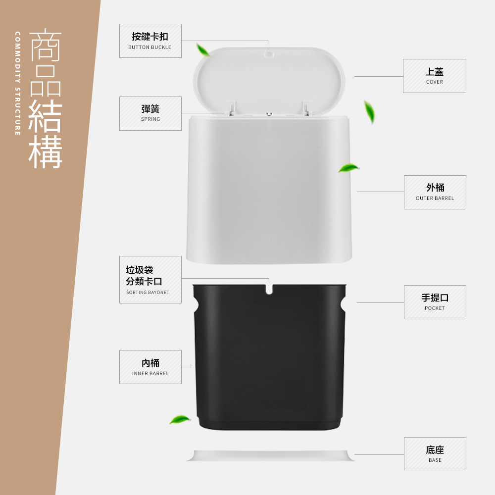 【FL生活+】北歐風彈蓋式垃圾桶(YG-195)掀蓋垃圾桶 回收垃圾桶 垃圾桶 垃圾桶北歐 帶蓋垃圾桶 換袋垃圾桶 窄版純潔白-(2入要選7-11或全家)|經典灰-(2入要選7-11或全家)Trash & Recycling BinsFL生活+ 官方直營旗艦店