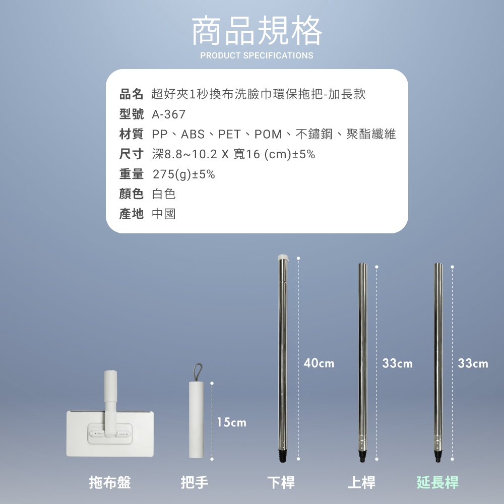 【FL生活+】超好夾1秒換布洗臉巾環保拖把-專用延長桿延長桿MopsFL生活+ 官方直營旗艦店