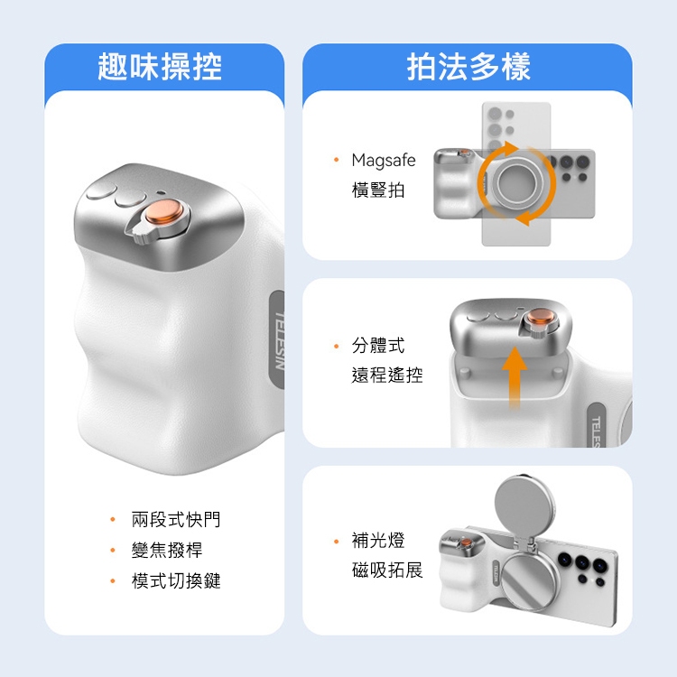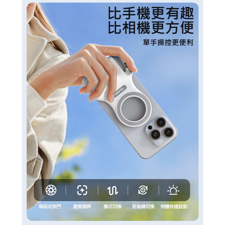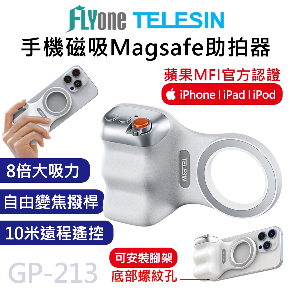 送磁吸充電線 TELESIN泰迅 手機磁吸 Magsafe 快門變焦助拍神器 變焦拍攝 對焦撥桿 拍照手柄GP-213magsafe磁吸助拍器+送磁吸數顯線|magsafe三色柔光補光燈Selfie AccessoriesFLYone|領先者|SJCAM原廠授權–行車記錄器/運動攝影機