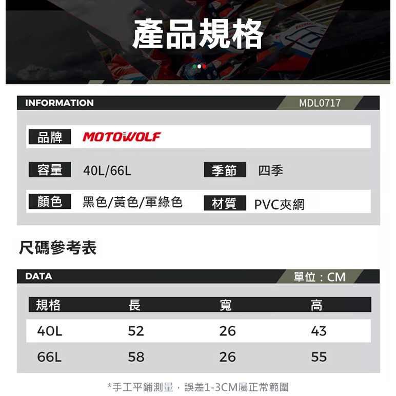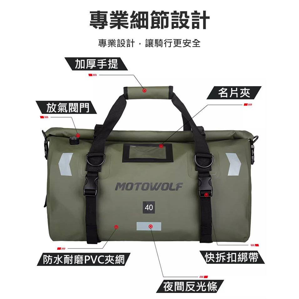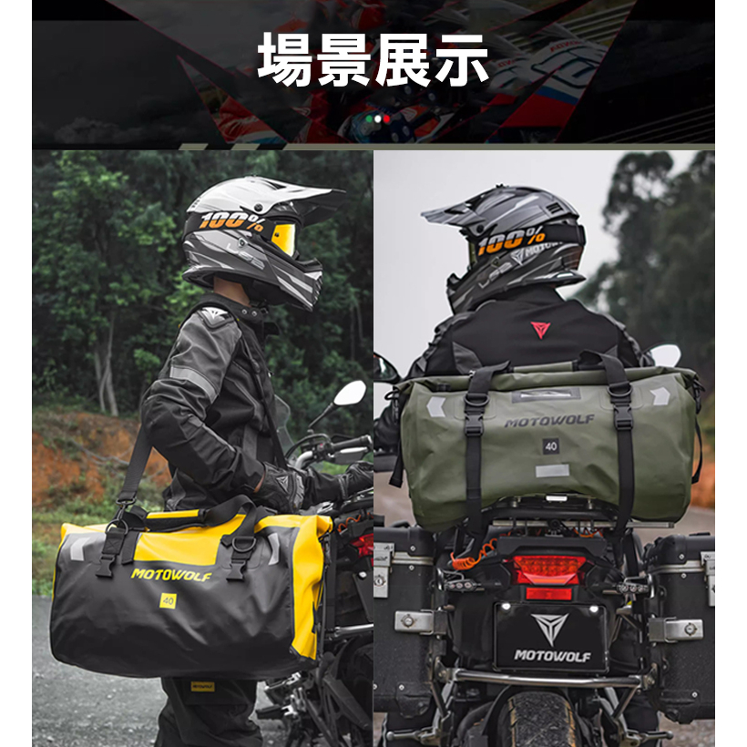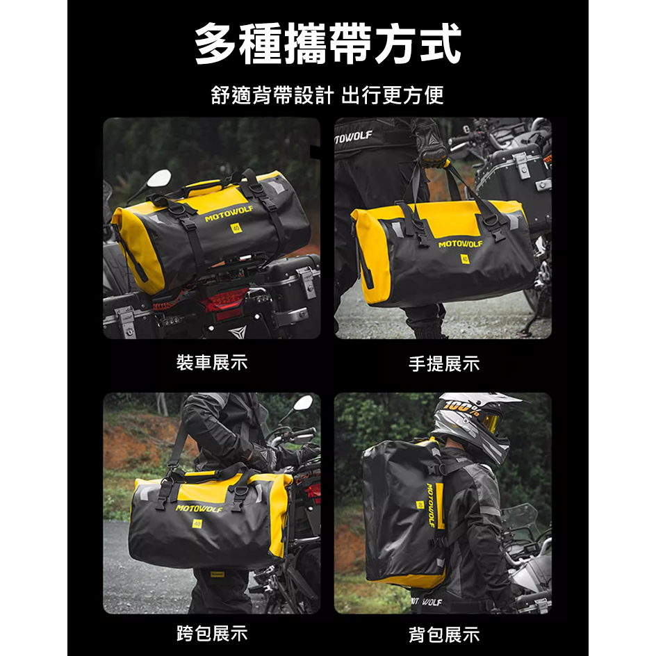 MOTOWOLF摩多狼 新款 (四綁帶) 摩托車機車 防水旅行袋 行李袋 防水袋 防水包 GP-80軍綠,66L|金黃,66L|暗夜迷彩,66L|黑黃,66L|軍綠,40L|金黃,40L|黑色,40L|黑色,66L|黑黃,40L|暗夜迷彩,40L|螢光綠,40L|螢光綠,66LFLYone|領先者|SJCAM原廠授權–行車記錄器/運動攝影機