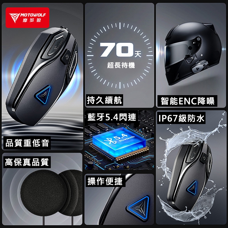摩多狼 BH1 摩托車騎行 防水降噪通话 安全帽耳機 MOTOWOLF【硬麥款】適用半罩式|【軟麥款】適用全罩式FLYone|領先者|SJCAM原廠授權–行車記錄器/運動攝影機