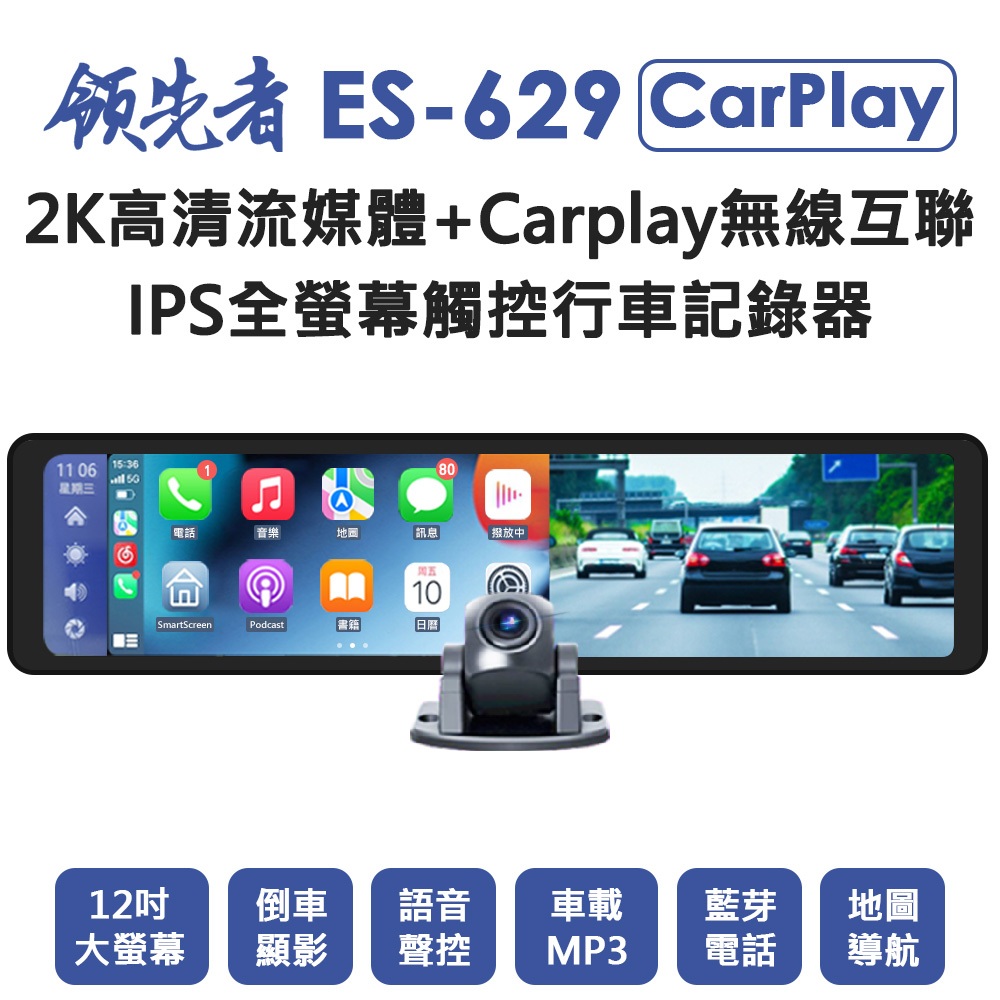 領先者 ES-629 CarPlay 2K高清流媒體電子後視鏡 12吋螢幕 手機APP WIFI 雙鏡頭 行車紀錄器標配|標配+256G|標配+64G|標配+128G|標配+32GCamcorders & Parking CamerasFLYone|領先者|SJCAM原廠授權–行車記錄器/運動攝影機