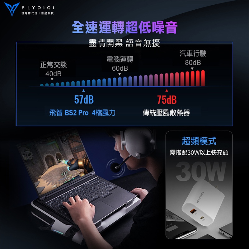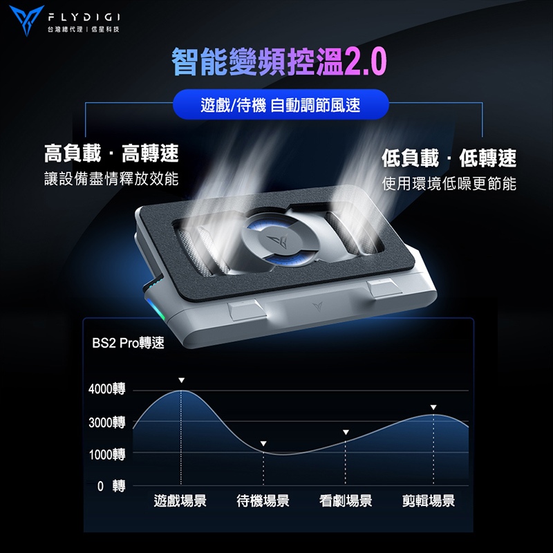 FLYDIGI 飛智 BS2 PRO 壓風式筆電散熱底座 4000RPM 智能變頻控溫2.0 可拆卸防塵網 信星科技BS2_ProCooling PadsFLYDIGI 飛智 官方旗艦店
