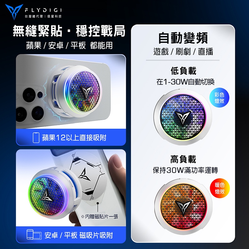 FLYDIGI 飛智 B8X 創新吸風式 手機散熱器 30W功率 智能控溫3.0 變頻燈環 散熱風扇 直播散熱 信星科技B8X_白USB & Mobile FansFLYDIGI 飛智 官方旗艦店