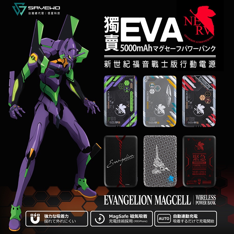 SAVEWO 救世 MagCell MC509 磁能寶 EVA 新世紀福音戰士 5000mAh 磁吸行動電源 信星科技二號機裝甲|初號機裝甲|初號機暴走|朗基努斯之槍|零號機裝甲|緊急狀態Powerbanks & BatteriesFLYDIGI 飛智 官方旗艦店