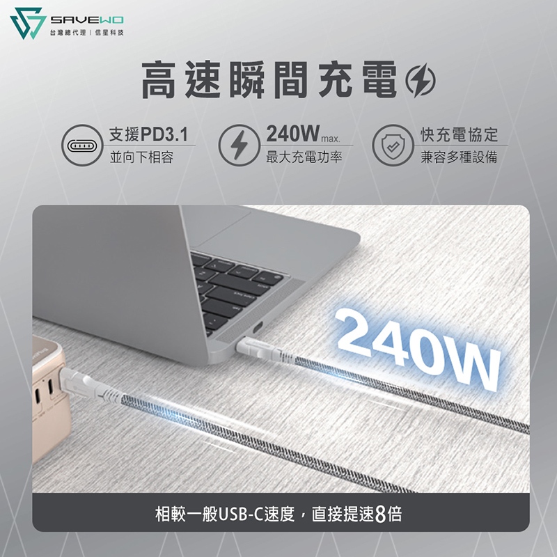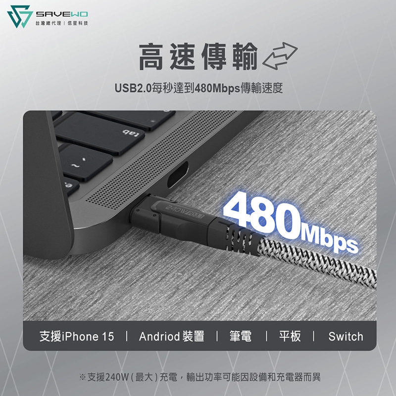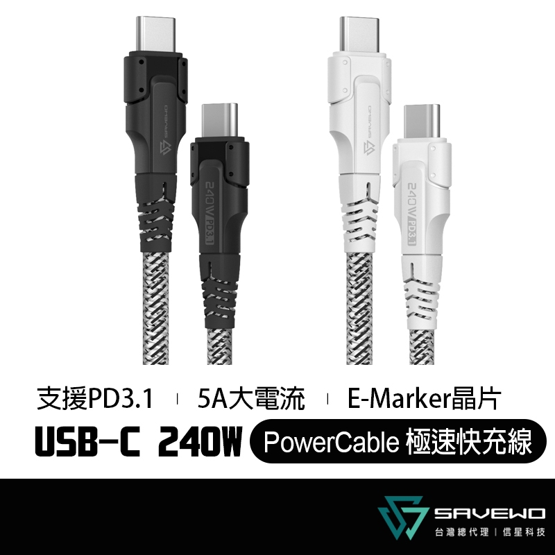 SAVEWO 救世 PowerCable 極速快充線 240W 雙USB-C 480Mbps PD 傳輸線 信星科技白色【1米】WE|白色【2米】WE|黑色【1米】BK|黑色【2米】BKCables, Chargers & ConvertersFLYDIGI 飛智 官方旗艦店